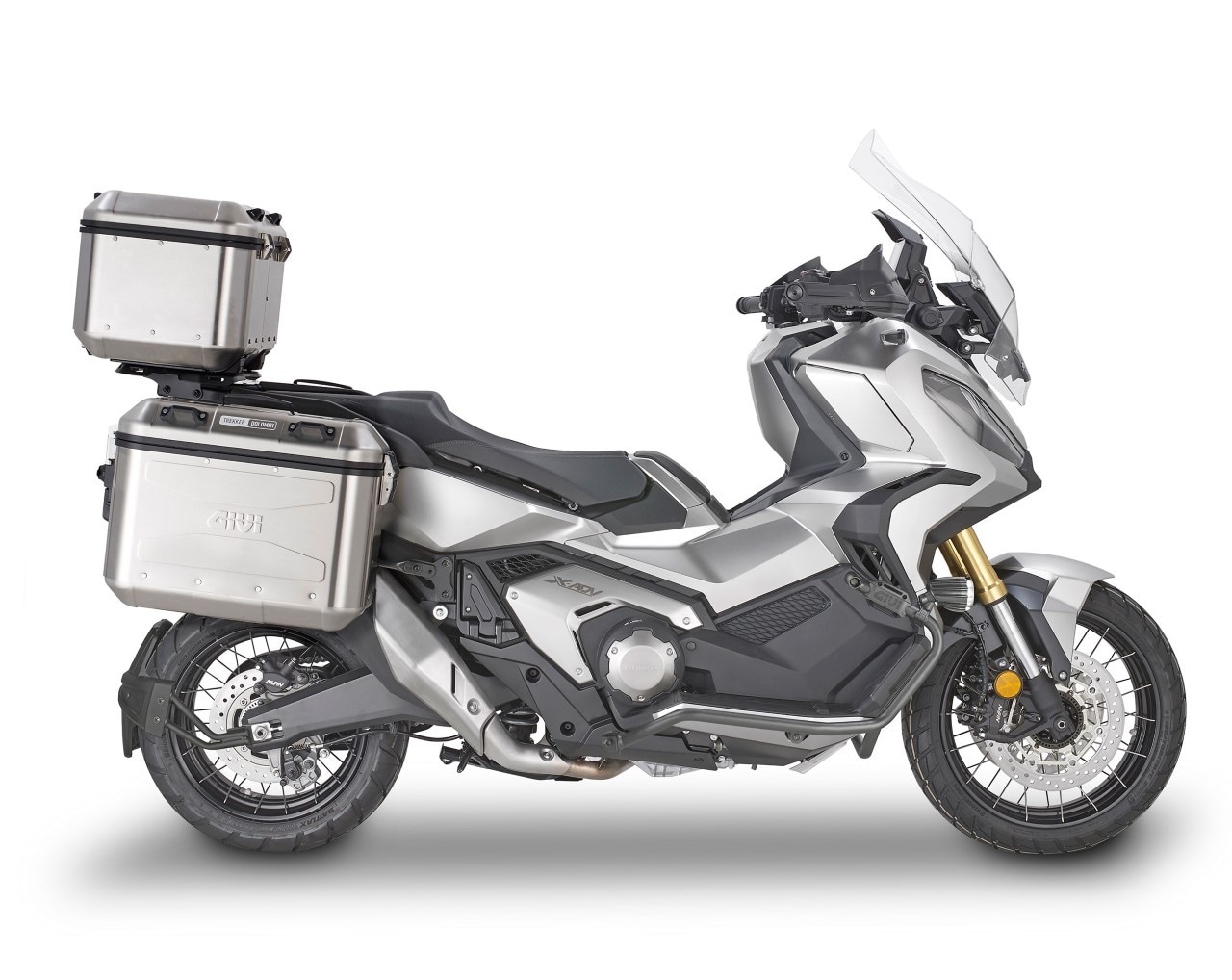La formula dell'Honda X-ADV è un successo, negli anni è stato scelto da moltissime persone, per molteplici fattori, dalla cilindrata “motociclistica”, alla sua anima da veicolo tutto terreno, alle inedite soluzioni del suo design, e non ultimo per la sua struttura che lascia spazio a poter montare un allestimento da viaggio che poco ha da invidiare alle soluzioni adottate da GIVI per le tourer. A partire dal tris di valigie, laterali e posteriore, quasi senza limite di scelta nel campo delle “rigide” by GIVI. Sull’X-ADV si possono montare top case e valigie in materiale plastico MONOKEY e MONOLOCK e anche i modelli in alluminio Trekker Outback (MONOKEY CAM-SIDE) e Dolomiti (MONOKEY).