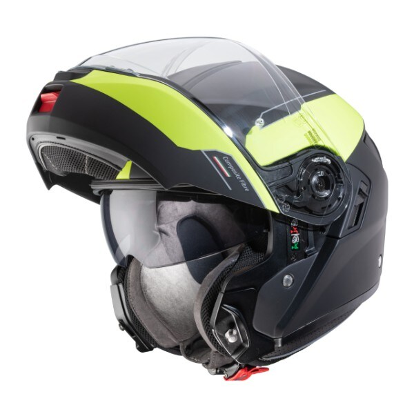 Il casco apribile Caberg è caratterizzo dalla doppia omologazione integrale/jet, un campo di visione tra i più estesi della sua categoria e può alloggiare i principali sistemi di comunicazione