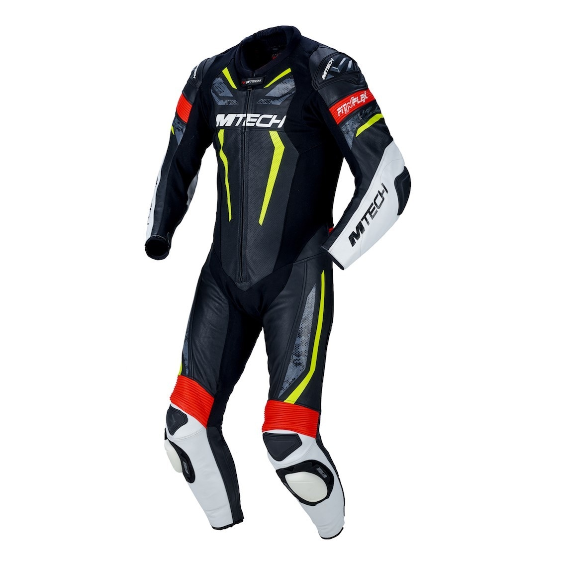 Ad agevolare i movimenti tipici della guida racing ci pensa la nuova struttura FITNFLEX, caratterizzata da soffietti in pelle e tessuto elasticizzato Dynamic Zone (partono dalle scapole e arrivano alla vita, passando per il fianco), nonché le maniche preformate. Ulteriore comfort è garantito dagli inserti in neoprene elastico presenti su collo, polsi e caviglie. La sicurezza è affidata alle nuove protezioni ECS (External Compound Shield), progettate per un assorbimento d'urto graduale, mentre gomiti e ginocchia sono rinforzati da placche esterne. Le cuciture principali sono Safety Seams, doppie e rinforzate. Completano la dotazione di sicurezza la tasca per alloggiare il paraschiena e il sistema di aggancio C-System sul petto, utile per l'inserimento della protezione Chest Prosoft (opzionale). Non manca infine la gobba aerodinamica, per massimizzare la penetrazione all'aria. In arrivo a breve anche la versione due pezzi della tuta!