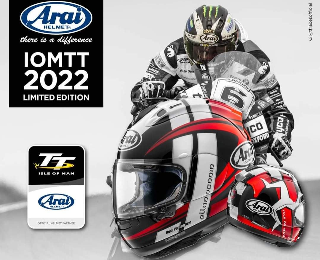 Per quasi 15 anni Arai ha segnato il suo impegno per l'evento, con una versione molto speciale del suo casco racing RX-7V, con grafica progettata dal leggendario Drudi Performance. Bello ed estremamente attraente, l’Arai IoM TT Limited Edition fa il tutto esaurito ogni anno e per il 2022 è basata sul nuovo casco RX-7V EVO, omologato ECE R22-06.