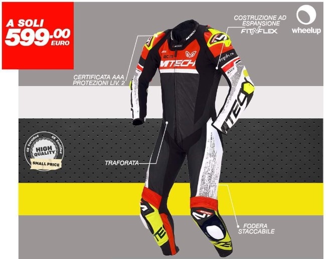 Mtech, il marchio di abbigliamento racing di Wheelup, presenta la tuta Ring Replica si ispira alle tute in pelle di ultima generazione che vengono usate sui circuiti di tutto il mondo. Certificata in Classe AAA secondo la normativa EN 17092:2020, nasce dalla pista e si dimostra perfetta sia nell'uso amatoriale che in quello professionale.