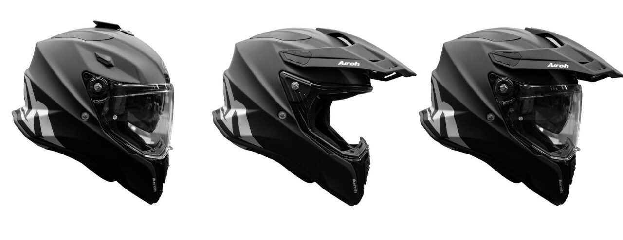 Il casco che concentra il meglio del design e della tecnologia di Airoh, permette di cambiare con facilità la sua natura, passando dalla combinazione di frontino e visiera, alla modalità naked, alla versione off road senza visiera