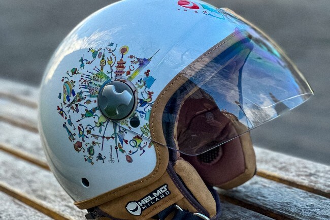 Il casco “Vapensiero Barabà” presenta su entrambi i lati della calotta un tripudio di immagini che si ispirano all'opera "Il mondo perfetto" di Isabella Mandelli, ex amministratore delegato di una multinazionale, che da qualche anno ha deciso di dedicarsi a tempo pieno alla pittura con acquerello. Disponibile nella duplice versione Matt Black e Glossy White, il casco è in vendita a 159 euro.