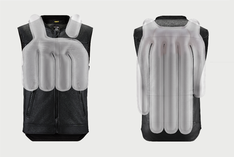 Due versioni, pelle o tessuto, per il capo da moto airbag più pratico, indossabile sopra o sotto la giacca. Ecco tutti i dettagli