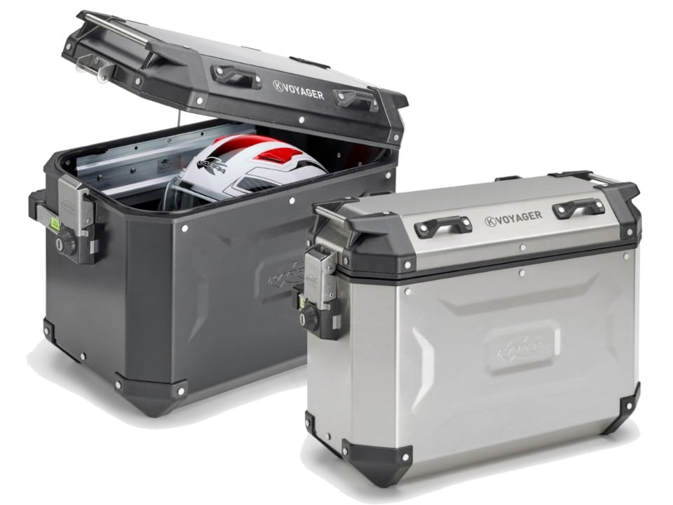 Kappa presenta la nuova linea di valige K'Voyager, che si posiziona come top di gamma del marchio e sostituisce la precedente K’FORCE, ereditandone design e capacità, ma migliorando le caratteristiche di leggerezza e stabilità. Pensata per i grandi viaggi, K’Voyager include attualmente un top case disponibile in tre capacità (42, 48 e 58 litri), una valigia laterale offerta in due varianti da 37 e 48 litri e una nuovissima laterale destra scantonata da 33 litri.