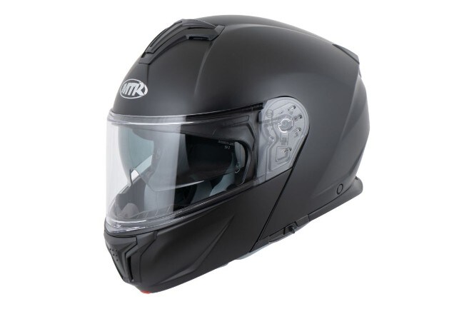 Realizzato in ABS/policarbonato, con un peso di 1630 gr., il nuovo MTR K-7 è un casco modulare semplice, ma efficace, dotato di un rivestimento confortevole, removibile e lavabile, di una visiera trasparente dotata di predisposizione Pinlock e di un visiera parasole integrata, oltre a prese d'aria regolabili nella zona del mento e della parte superiore della testa, nonché ventilazione sulla nuca. Ovviamente risponde perfettamente alla nuova normativa ECE 22.06.