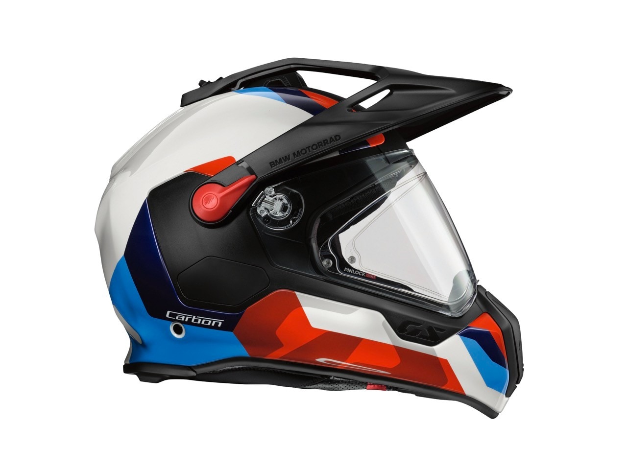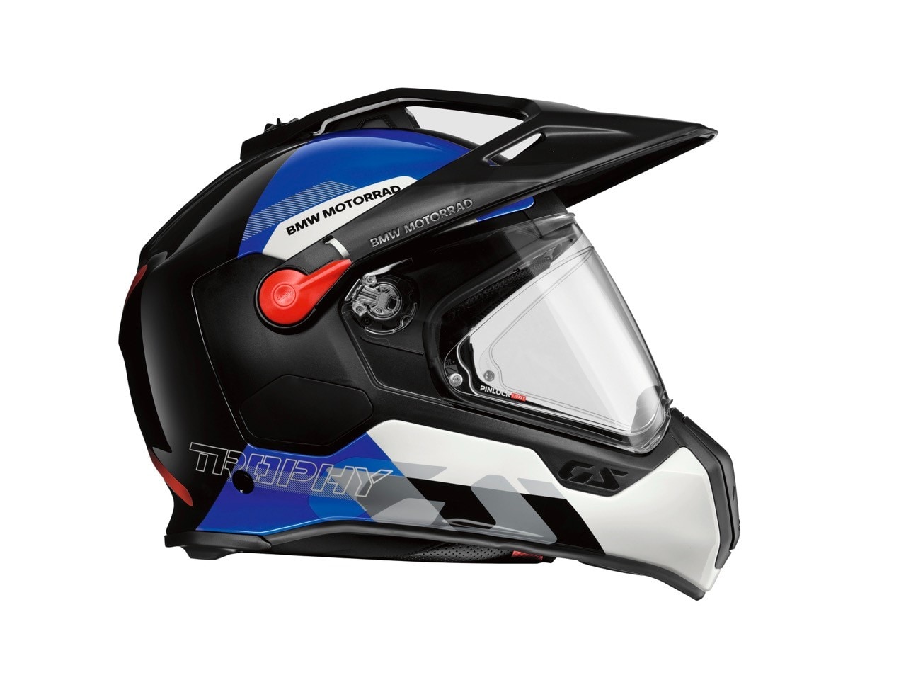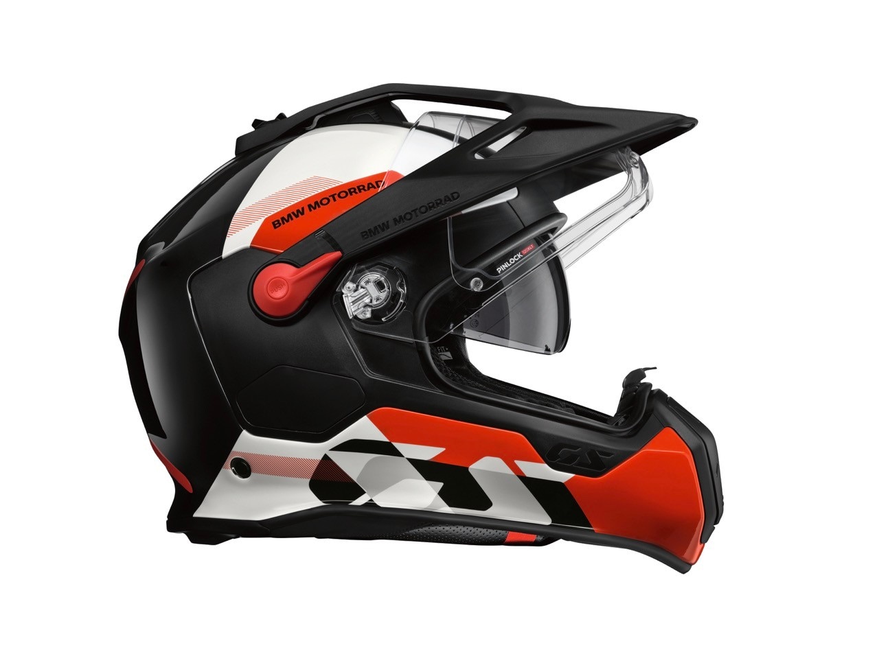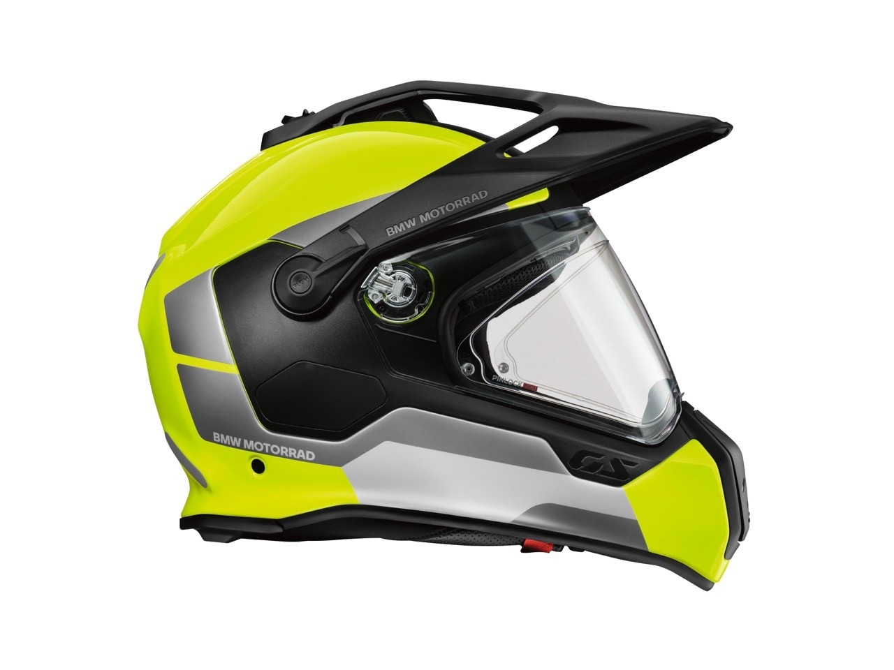 Il nuovo casco adventure BMW prevede visiere antigraffio di diverse tinte compatibili con Pinlock 120 e removibili rapidamente con attacco Quick Release, visierino parasole, numerose prese d’aria tra cui quella sulla mentoniera con filtro anti polvere e quella nella parte superiore della calotta.