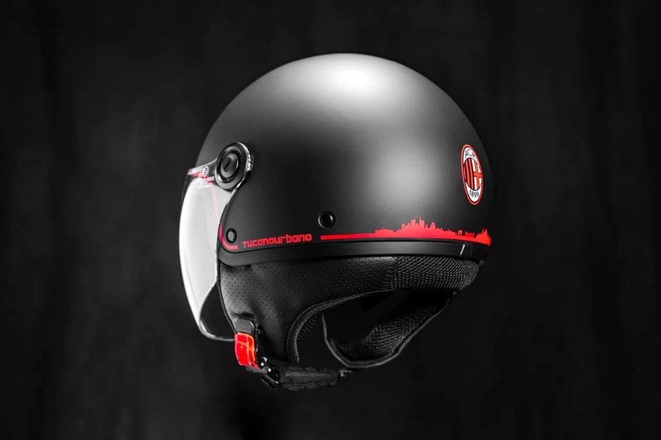 Scendono in campo i primi due caschi El’Jettin AC Milan. Per Tucano Urbano che è nato e cresciuto a Milano e che, da oltre 25 anni, vede fiumane di tifosi in sella allo scooter sulla via di San Siro è stato inevitabile incontrare la società calcistica AC Milan per realizzare un’edizione speciale del suo demi-jet più amato in due varianti celebrative della passione rossonera.
