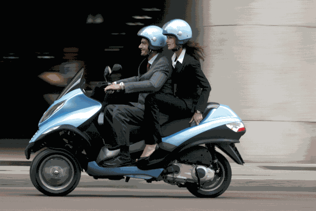 Presentato a Roma il nuovo scooter con 3 ruote. L'inedito sistema con doppia ruota anteriore stravolge il concetto di stabilità e frenata, creando un nuovo livello di sicurezza. Sarà in vendita da luglio a 5.000 euro la versione di 250cc
