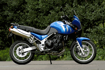 Nello specifico osserviamo che al posto del telaio a doppio trave in tubi d’acciaio saldati troviamo sempre un doppio trave diagonale, ma in alluminio ottenuto per pressofusione, simile a quello della Daytona 675. Per quanto riguarda le sospensioni viene abbandonata la corsa lunga tipica delle proposte da fuoristrada (dai 170 mm della vecchia Tiger si è passati ai 150 mm della attuale): l’opera di “stradalizzazione” ha visto l’introduzione di una forcella Showa upside-down con diametro degli steli immutato (43 mm).