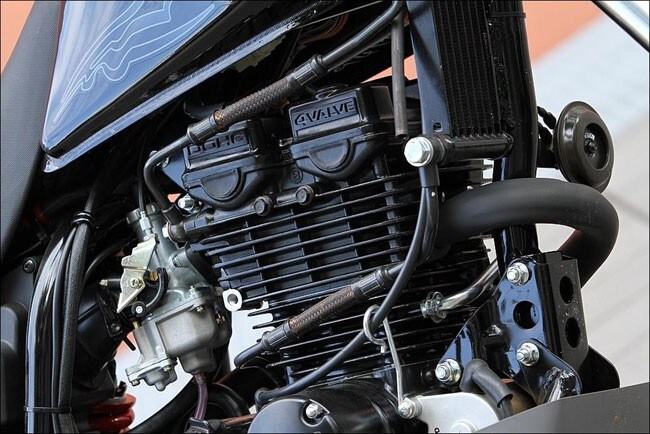 Al centro del telaio in tubi di acciaio si fa notare il motore monocilindrico da 125 cc, quattro valvole, quattro tempi, con distribuzione a doppio albero e raffreddamento ad aria e olio. Un piccolo "mulo" che ha una potenza di 13 CV a 10.000 giri e una coppia di 10,89 Nm a 8000 giri, valori più bassi della maggior parte delle altre 125 cc ma che, come vedremo, non penalizzano le prestazioni della coreana.