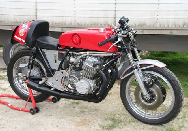 Quella concessionaria rispondeva al nome di Japauto e, in seguito, le mie visite si fecero sempre più frequenti per ammirare la nuova Honda, fino a quando non mi invitarono a salirci sopra! Ho così avuto modo di scoprire che all'interno c'era anche una CB 750 da corsa, equipaggiata con due dischi anteriori e una carenatura rossa e bianca, accanto alla quale facevano bella mostra di sé una grossa coppa e un banner pubblicitario dove si spiegava che la moto in questione aveva vinto il Bol d'Or 24 Ore di Montlhéry la settimana precedente.