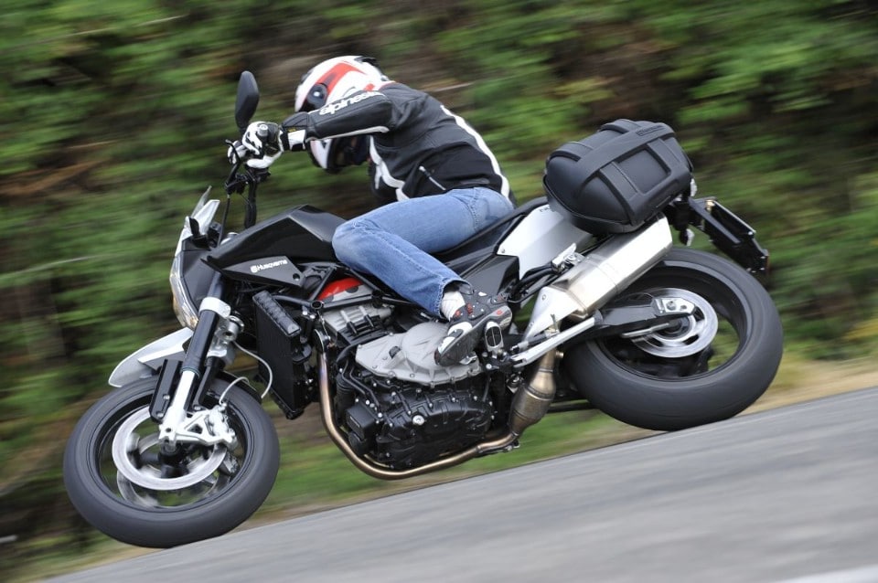 Se ci passate il termine, potremmo dire che la Nuda Husqvarna è un vero giocattolo per adulti. Tralasciando ogni interpretazione maliziosa, non si può non sottolineare come, con questa moto, i punti della patente siano costantemente a rischio. Vista l'assoluta disinvoltura con cui la Nuda si presta ad ogni velleità funambolica. Per carità, se si vuole andar piano la bicilindrica varesina propone un motore regolare e progressivo come pochi, oltre ad una ciclistica tanto agile quanto facile e immediata nell'interpretazione. Ma basta varcare i cancelli di una pista per comprendere appieno le sue qualità: rapidissima nei cambi di traiettoria, la nuova Husky ha un comportamento che si pone a metà strada tra un motard e una stradale. Per questo permette di guidare con ginocchio a terra o, volendo, con lo stivale che striscia l'asfalto nel più classico stile supermoto. Tra una curva e l'altra poi è un corollario di numeri di acrobazia, con belle impennate di potenza, anche in seconda marcia, e traiettorie che si possono interpretare in mille modi differenti, tutti ugualmente appaganti. Per la cronaca, in pista abbiamo usato la "R", che tra le particolarità adotta anche un pignone più piccolo (da 16 denti al posto di quello da 17 della Nuda "base"), e questo sottolinea la progressione del motore e le ottime capacità di accelerazione fuori dai tornanti. Il bicilindrico infatti è davvero a punto, e per ottenere il massimo è sufficiente farlo girare sopra quota 5.000, dove la spinta, già corposa ai regimi inferiori, diventa ancor più briosa e appagante fino al limitatore, posto a circa 9.000 giri.