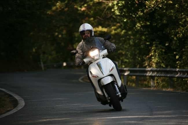 Il design, comunque, è lo stesso del Beverly 300, dal quale si differenzia per il cupolino di serie, le finiture satinate al posto di quelle cromate e per le ruote a cinque razze, belle e soprattutto molto più leggere.