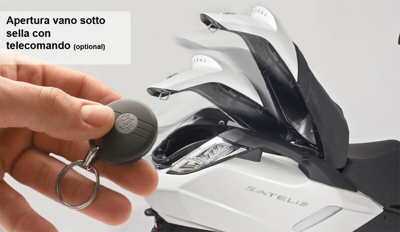Se il design nella scelta di uno scooter conta fino ad un certo punto, quello che interessa a un automobilista, ma non solo, in un mezzo da trasporto da usare tutti i giorni è la praticità e la capacità di carico e il nuovo Satelis soddisfa ampiamente entrambe le richieste. Il sottosella è in grado di contenere due caschi integrali e accedervi è semplicissimo: basta ruotare la chiave di accensione in avanti e, come un normale bagagliaio di una macchina, lo sportellino posteriore si solleva! Anche lo spazio dietro allo scudo è notevole e per sistemare una borsa davanti alle gambe è presente il pratico gancio. Vi sono poi altri due i vani di carico, uno sul manubrio, in grado di contenere un cellulare o il portafogli, e l'altro nel retroscudo che è molto profondo e capiente (ospita anche la presa da 12V) ed è protetto da una serratura, soluzione che consente di lasciare senza patemi qualsiasi oggetto nelle soste, ma che lo rende scomodo quando si vuole aprire senza togliere le chiavi dal blocchetto.