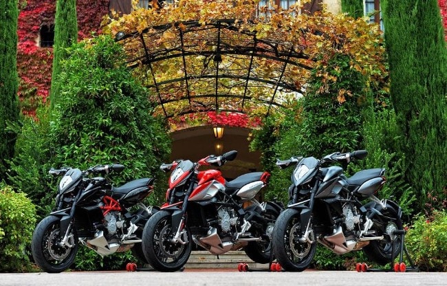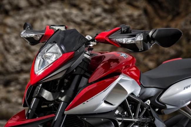 Una sportiva "pura" su queste strade si troverebbe in imbarazzo, le velocità in gioco non sono elevate e il potenziale di una carenata resterebbe inespresso. Ma con un bel manubrio alto, sospensioni dalla lunga escursione e coppia motrice sempre pronta, il divertimento è garantito: si balza da un tornante all'altro sfruttando i 70 Nm di coppia disponibili da 7.000 giri (ma anche "sotto" la spinta non è niente male) o tirando i giri sino alla sfuriata di potenza che arriva oltre gli 8.000. Dipende da quanto "dritto" la snella MV deve divorare prima di inserirsi nuovamente in piega: l'allungo infatti non manca, i tre pistoni frullano con rabbia agli alti regimi e la loro spinta è sfruttabile oltre i 12.000 giri. Il cambio (estraibile) gestito elettronicamente, consente cambiate a velocità della luce agli alti regimi. Insomma, ci siamo capiti, la Rivale (coi suoi 125 CV, addomesticati dal controllo di trazione con 8 livelli di intervento) è nata per le pieghe dei passi di montagna, non per l'autostrada o per i lunghi viaggi.