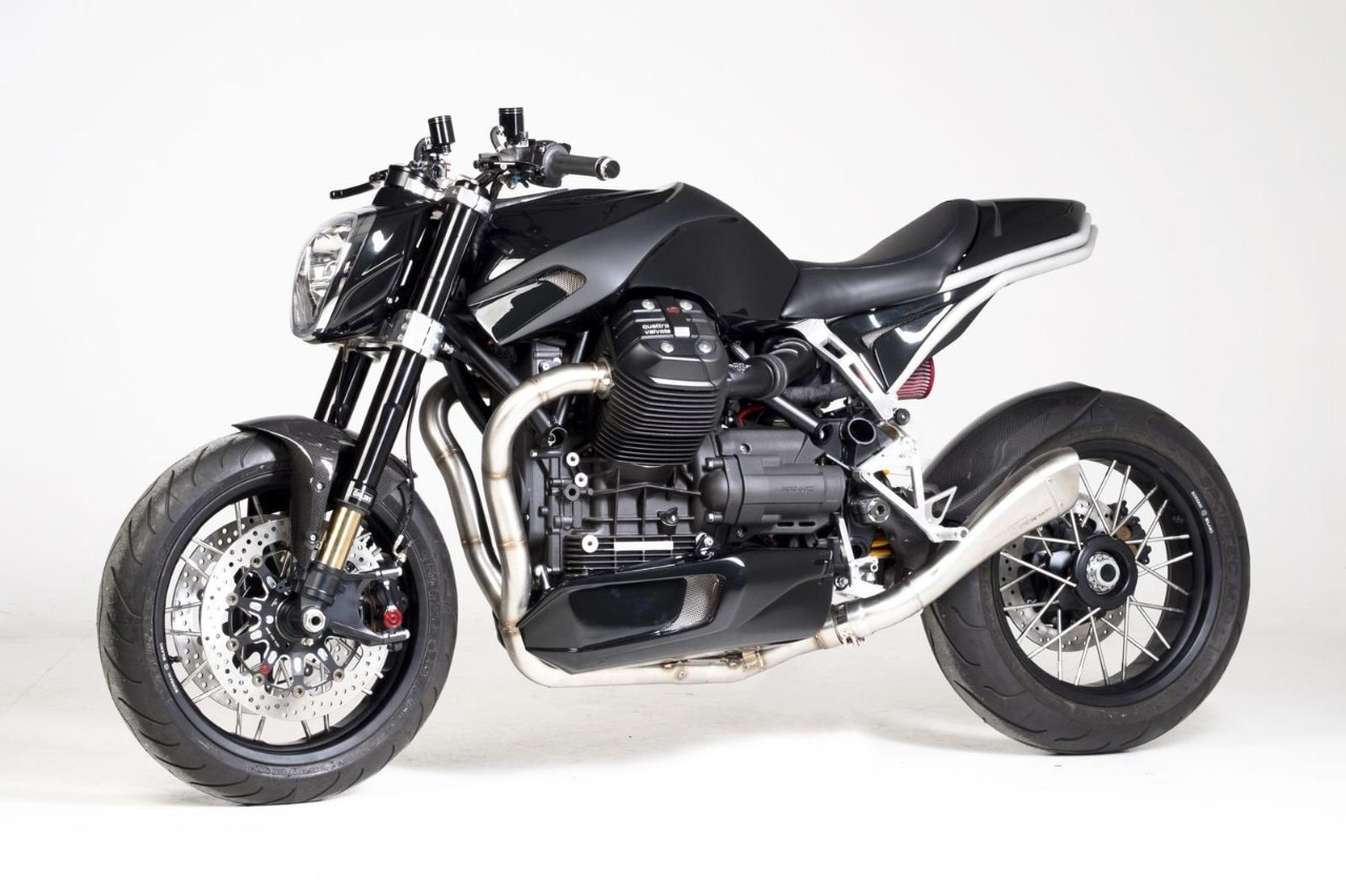 La componentistica, tutta di pregio, arriva da diversi specialisti: la sovrastruttura è in fibra e i parafanghi in carbonio; i cerchi in alluminio dedicati, realizzati da Borrani, hanno 20 raggi di acciaio di grandi dimensioni e i mozzi in alluminio ricavati dal pieno. L'alluminio è usato anche nei supporti telaio, nell'asta di reazione del cardano, nelle piastre forcella. Lo scarico, con collettore 2 in 1 idroformato, è firmato da HP Corse, mentre il filtro aria è stato piazzato sotto la sella, a vista. Brembo l'impianto frenante, con dischi anteriori The Groove e pinze ricavate dal pieno, mentre la ciclistica prevede una forcella Öhlins da 48 mm nera con riporto al TIN, e un monoammortizzatore Öhlins regolabile.