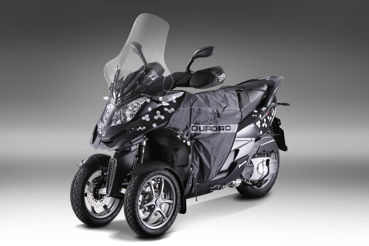 Adatto sia per i conducenti esperti sia per i neofiti, oltre che al pubblico femminile grazie al baricentro basso e al peso contenuto, il QuadroS si presenta forte del suo avantreno a doppia ruota gestito tramite il sistema HTS (Hydraulic Tilting System, sistema a ruote indipendenti), sviluppato per offrire un feeling di guida immediato e un assetto ottimale anche in situazioni di equilibrio precario su fondi disconnessi con dossi o avvallamenti, rotaie e asfalti bagnati. Fino al 31 dicembre, il QuadroS viene venduto con il "winter pack" (del valore di 500 euro) compreso nel prezzo di acquisto, composto da copri manopole, coperta per le gambe, parabrezza maggiorato e bauletto da 50 lt. Non inclusi, ma disponibili, i pneumatici invernali.
