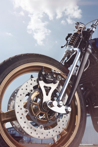 Ma gli interventi sono numerosi: dai supporti personalizzati per i freni al nuovo faro anteriore, fino al manubrio custom. Il modello presenta anche freni Brembo evoluti, filtri dell'aria a vista, monosella montata sul telaietto e codone ridisegnato, per esaltare il carattere sportivo della moto. I più attenti noteranno che il faro posteriore è un pezzo "rubato" a una MG, un mito della 4 ruote sportive. La verniciatura riprende la tonalità blu vintage Yamaha e i cerchi sono dorati. Completano il quadro gli scarichi laterali e la doppia marmitta, di ispirazione scrambler.