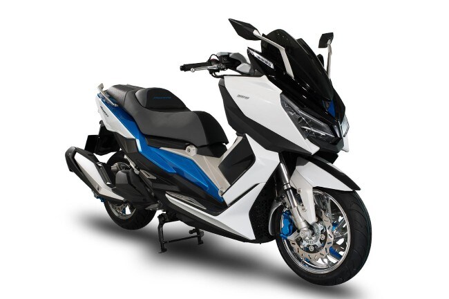 SYM presenta il suo primo 500, il Maxsym. Un maxi che colpisce per il design in cui spiccano aggressivi gruppi ottici. Monta una forcella a steli rovesciati. L'impianto frenante ha dischi a margherita e pinze ad attacco radiale: si tratta di un mezzo che gioca sul campo degli scooter ad alte prestazioni! Arriverà nel 2017?