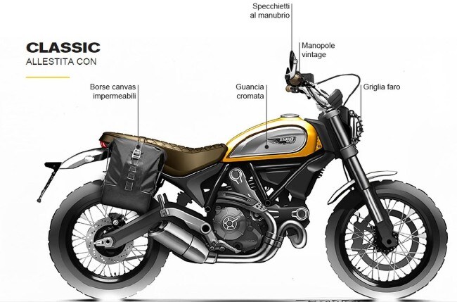 Il tutto partendo da un celebre modello del passato. Un palese ritorno al futuro da cui Ducati ha derivato 4 stili. Quattro caratteri diversi, che rappresentano altrettanti modi di vedere il mondo della moto. Dove la Icon è l'interpretazione contemporanea delle due ruote di ieri. Condividendo giusto i cerchi con la Full Throttle, che sfoggia invece un'anima modernissima e più sportiva. Mentre la Urban Enduro e la Classic, con i cerchi a raggi e le selle vintage, rendono giustizia a chi proprio non vuole rinunciare all'operazione nostalgia. Old style e fashion, che vogliono e possono mischiarsi a discrezione del proprietario...