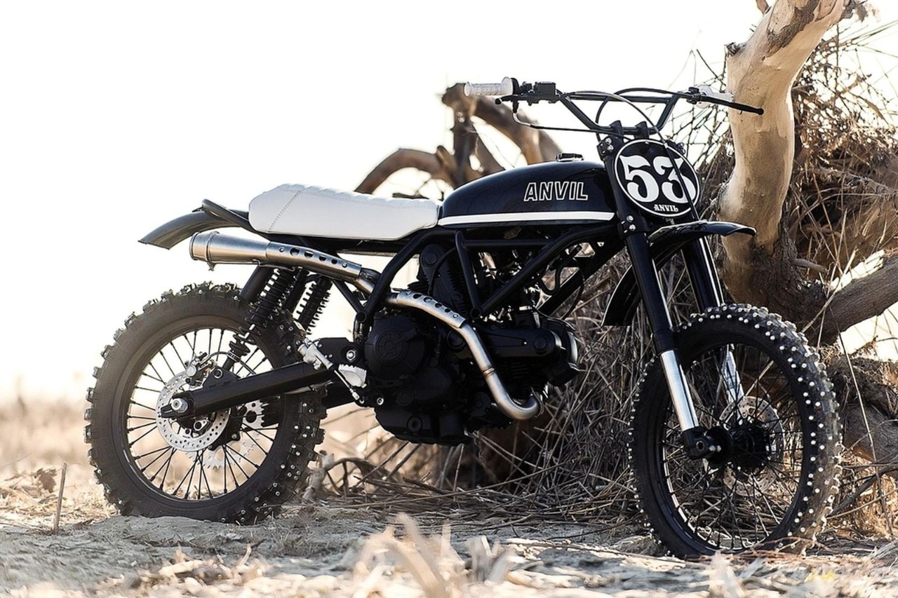 Anvil ha affrontato questa sfida stilistica e creativa utilizzando come base la Scrambler Sixty2 400 cm3 mantenendone il motore, parte del telaio anteriore e andando a rimodellare tutto il resto. “Volevamo rendere omaggio alla Ducati R/T, gloria di Casa Ducati - dicono i due customizzatori - reinterpretandola in vesti moderne come se il mondo del motocross di oggi avesse preso una sbandata, riportando certi vezzi stilistici utilizzati nei Settanta”.