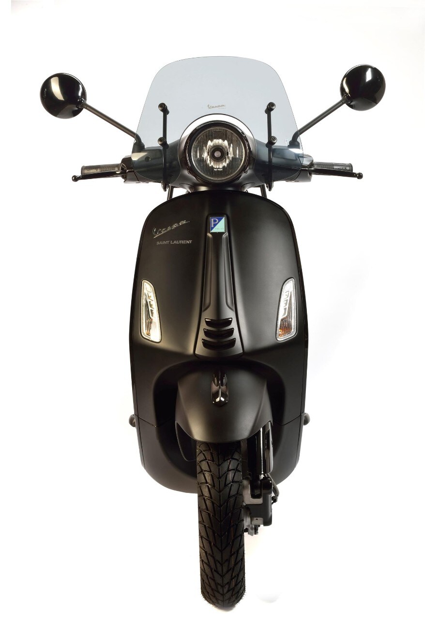 Al primo piano della storica boutique, situata nel cuore di Parigi, in via Saint Honoré 213, sarà esposto uno speciale modello da collezione dello scooter più amato al mondo, che Vespa ha firmato assieme a Saint Laurent. Si tratta di una Vespa Primavera 125 realizzata appositamente per l’occasione in un’elegante livrea nero opaco.