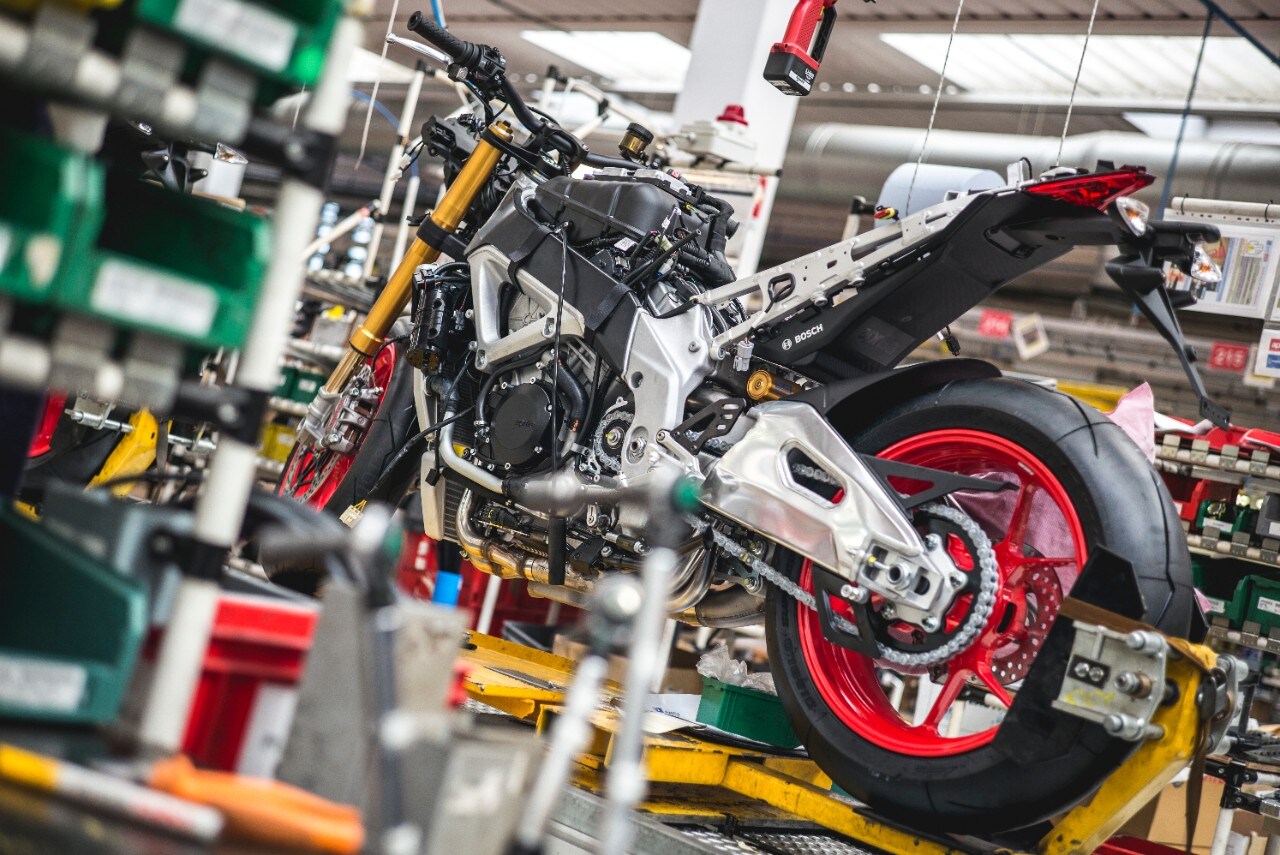 Se dovessi rispondere al solito giochino “Che moto ti compreresti se non avessi problemi di budget?” la scelta cadrebbe di certo su una naked, perché sono le moto che più mi fanno godere. E questa nuda sarebbe di certo la Aprilia Tuono V4 1100. Meglio ancora se nella graffiante versione Factory, con la colorazione racing e le sospensioni elettroniche Öhlins. Queste possono essere impostate in modalità semiattiva (la parte idraulica viene gestita in autonomia dal sistema Smart EC 2.0, in base alle informazioni elaborate dalla centralina) oppure in modalità manuale, dove compressione ed estensione vengono gestiti dal pilota e non variano fino a nuovo intervento sui registri elettronici.