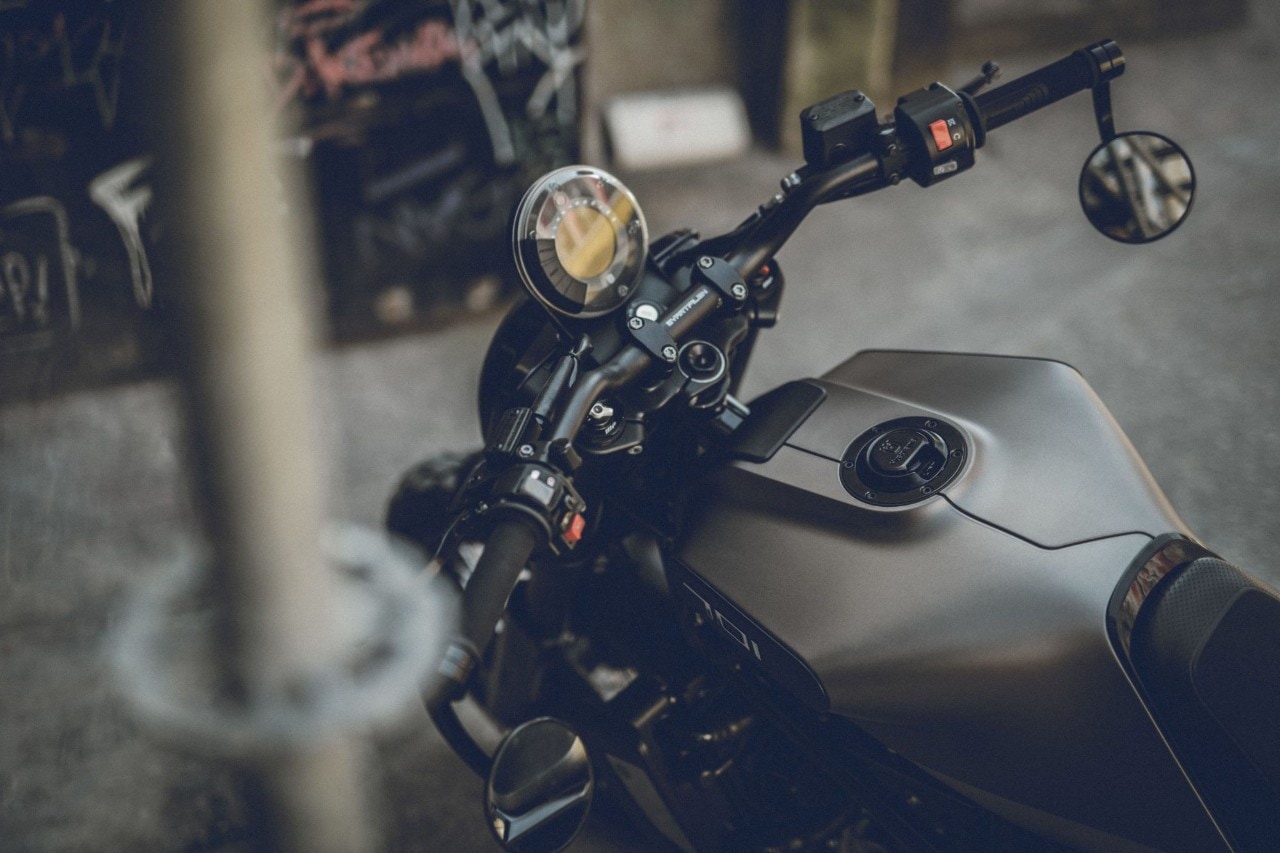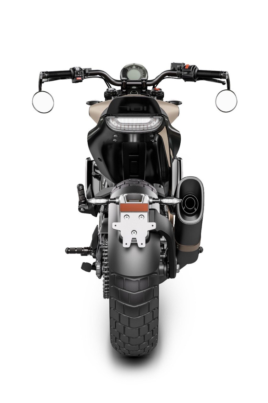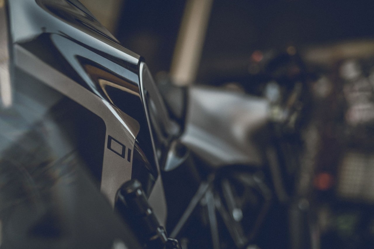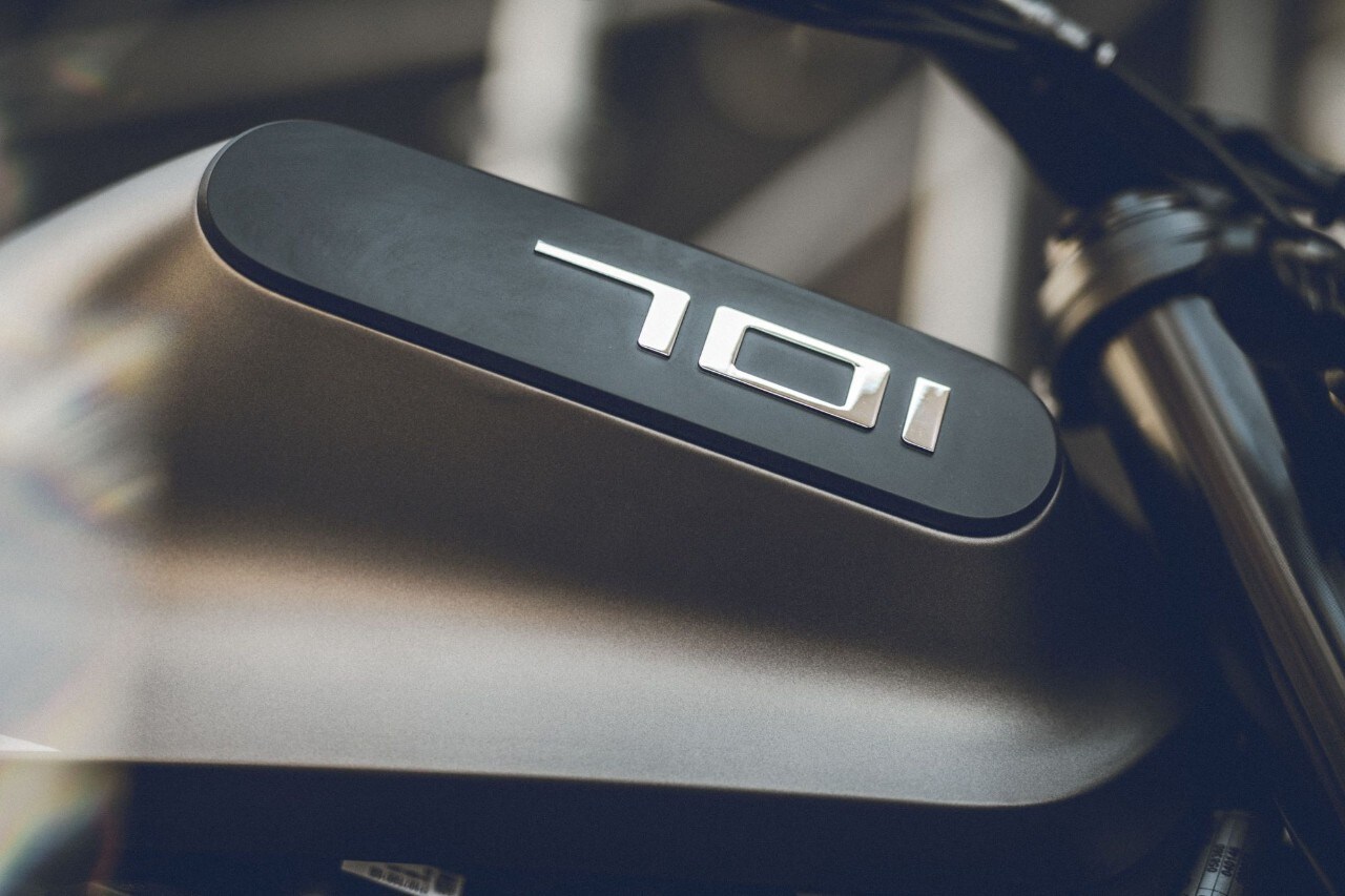 Sono stati aggiunti elementi come gli specchietti montati all’estremità delle manopole, che rendono più bassa e filante la sagoma facendola un po’ più aggressiva. I cerchi a raggi sono un elemento di alto livello che dà alla moto un aspetto più rude, mentre le pedane lavorate CNC regalano un ulteriore tocco di qualità premium e di attenzione al dettaglio. Piastrine in alluminio sono state inserite sul serbatoio per completare questa livrea alto di gamma, e al contempo offrire protezione alle cover del serbatoio.
