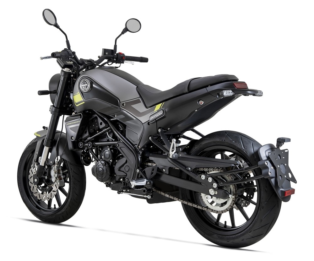 Il telaio, un traliccio in tubi d’acciaio, si integra perfettamente con il design del serbatoio, che regala superfici equilibrate e dinamiche, così come il codino, estremamente compatto. Il reparto sospensioni di Leoncino 250 si affida all’anteriore ad una forcella a steli rovesciati da 41 mm di diametro, mentre al posteriore si trova un forcellone oscillante con monoammortizzatore centrale ed escursione da 53 millimetri. L’impianto frenante è invece composto all’avantreno da un disco singolo flottante di 280 millimetri di diametro, con pinza a quattro pistoncini, mentre al retrotreno da un disco di 240 mm di diametro e una pinza flottante a singolo pistoncino. I cerchi in lega di alluminio da 17” montano rispettivamente pneumatici da 110/70-R17 e 150/60-R17.
