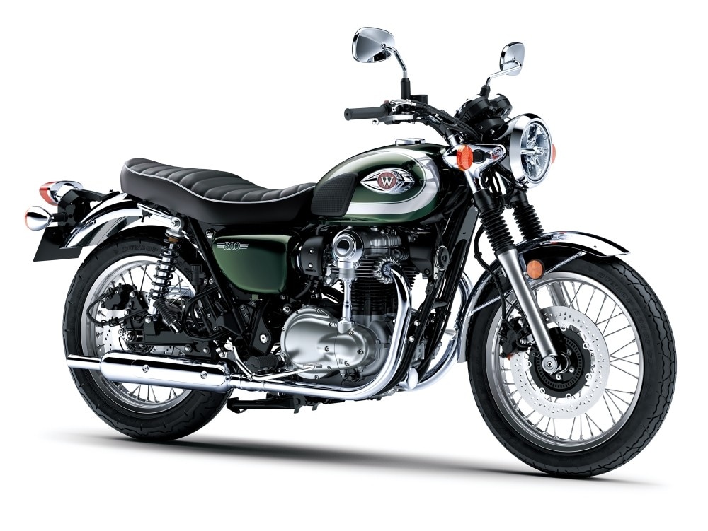 Kawasaki lancia la W800, terza moto della famiglia W che, nello stile e nelle specifiche, è un omaggio alla classica W1 del 1966. Come le altre due moto della gamma (la Street e la Café) ha un motore bicilindrico verticale da 773 cc con cambio a cinque marce e 48 CV di potenza. La differenza principale sta nel fatto che la W800 è una vera classica retrò: rispetto alle sorelle ha una ruota anteriore da 19" invece che da 18", una seduta più rilassata (grazie anche alla nuova sella e a un manubrio inedito) e dettagli premium come le finiture cromate sul motore. La Kawasaki W800 costerà 10.040 euro.