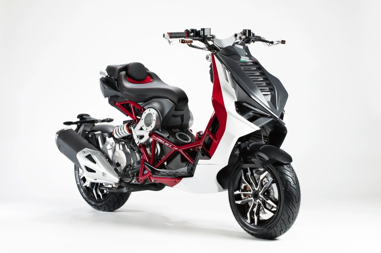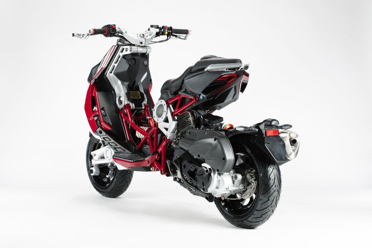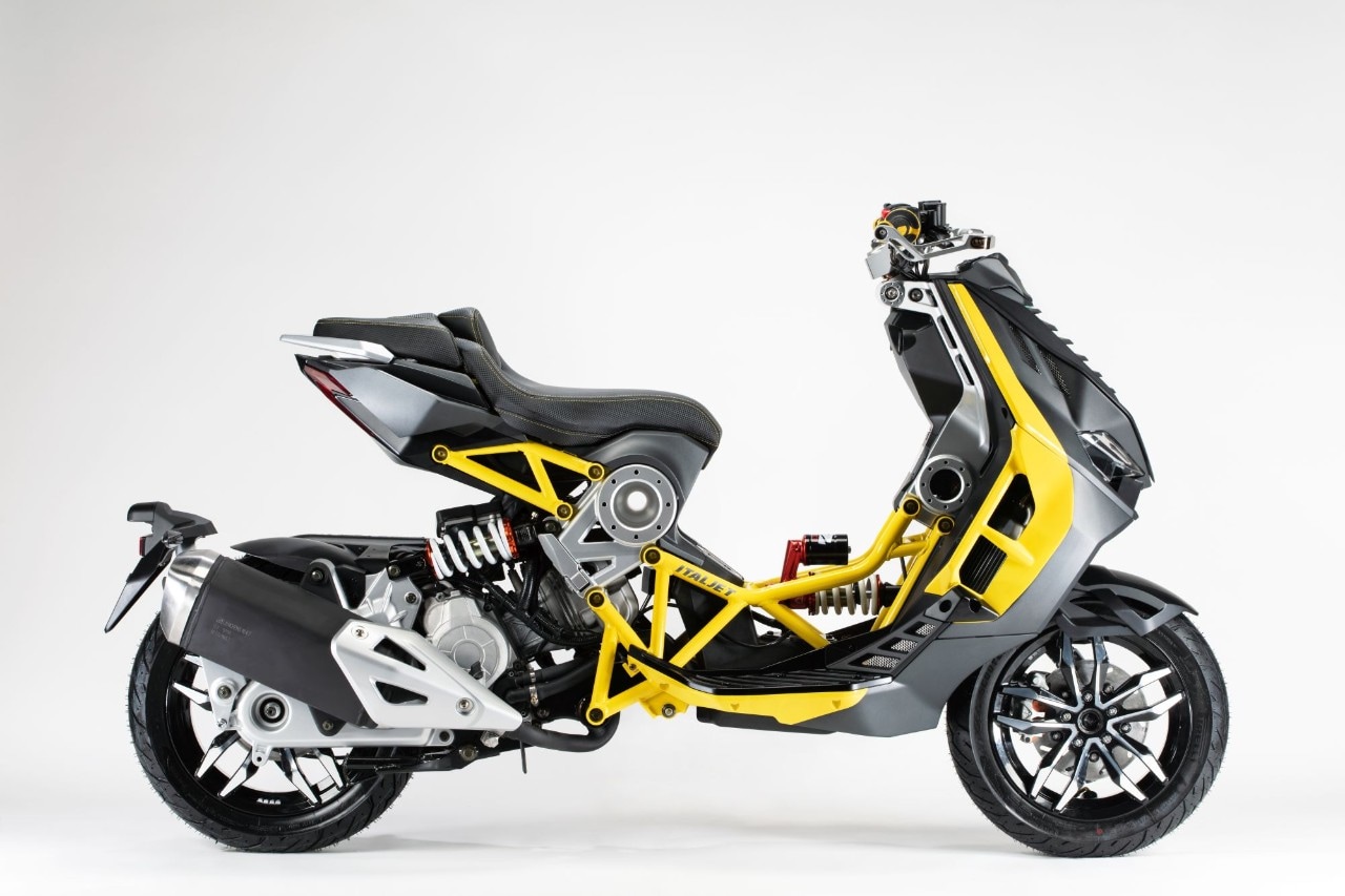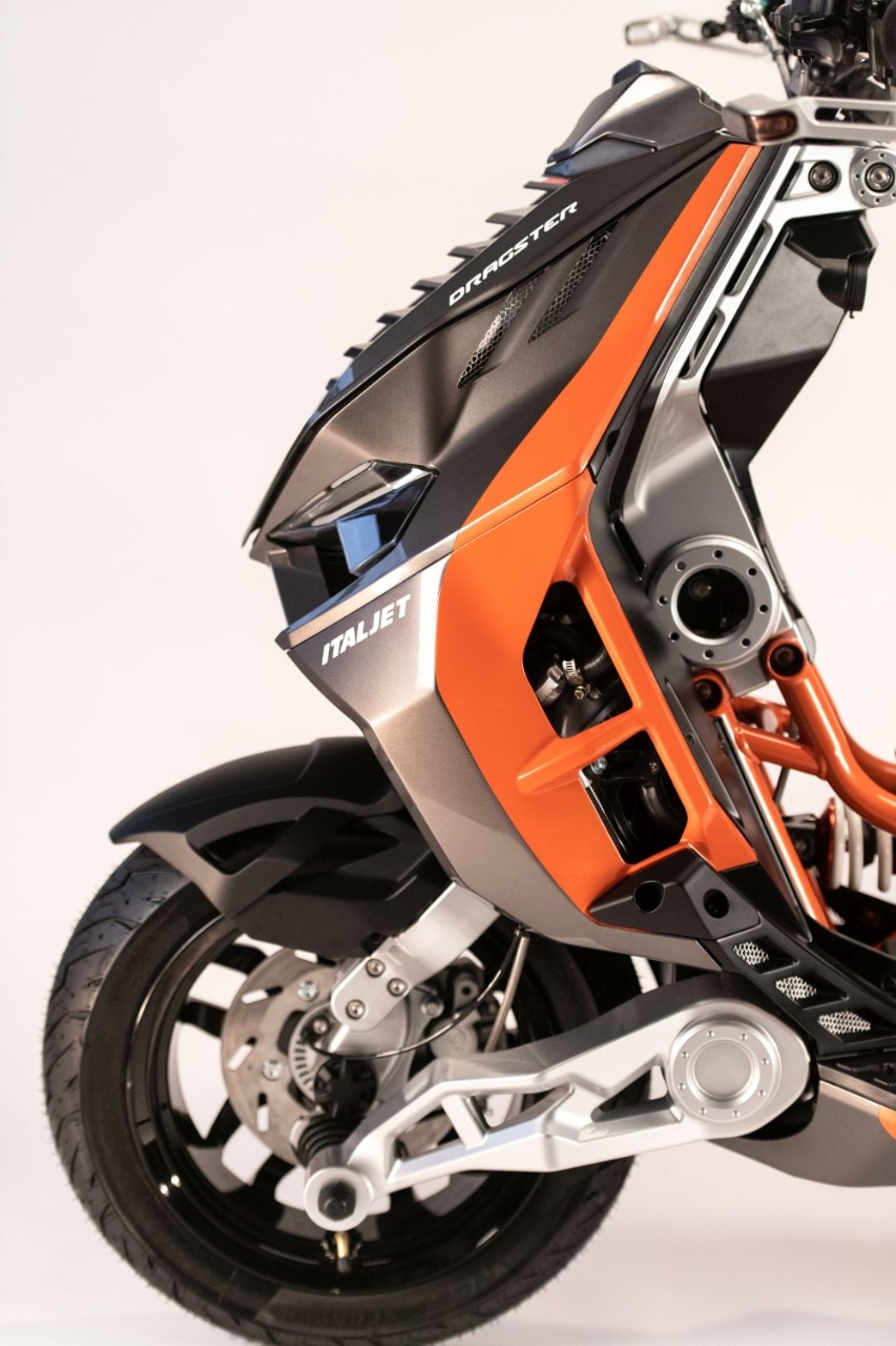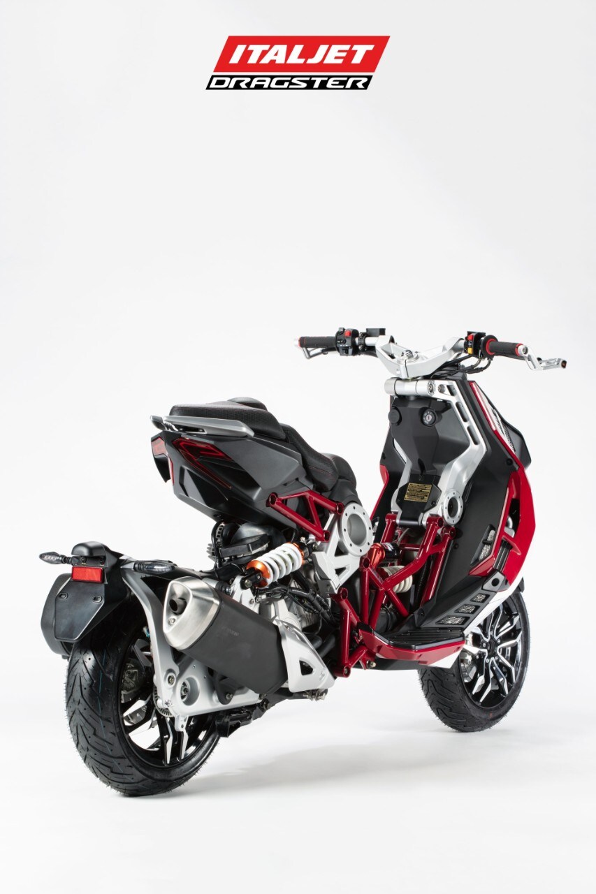Dopo l’anteprima dello scorso anno, Italjet ha presentato a EICMA la versione definitiva dello scooter sportivo Dragster: telaio a traliccio in bella vista, sospensione anteriore monobraccio, motore monocilindrico a 4T raffreddato a liquido disponibile nelle cilindrate 125 e 200 cc (rispettivamente da 15 e 20 CV di potenza). I primi 499 esemplari della “First Edition”, caratterizzati dalla targhetta numerata, si possono prenotare online sul sito del costruttore.