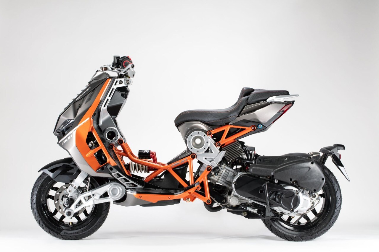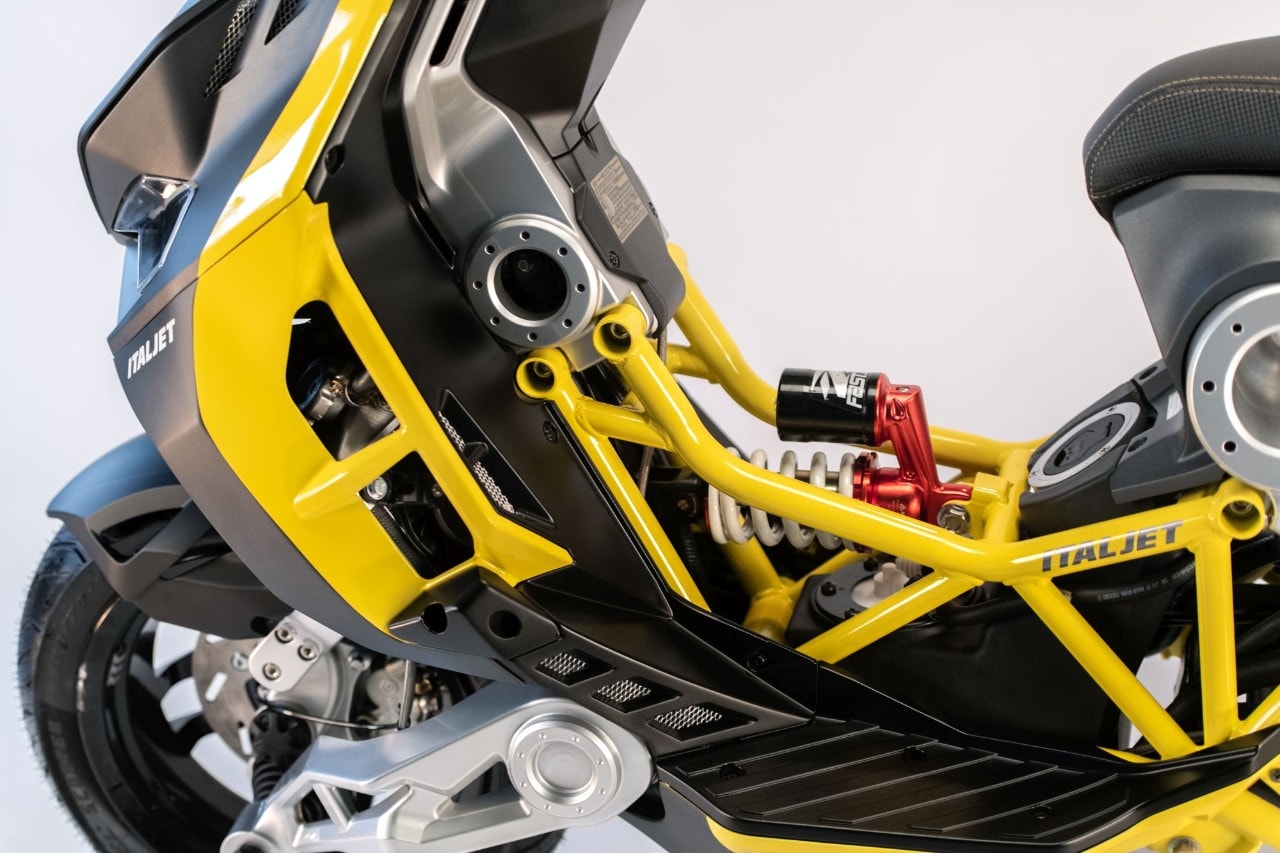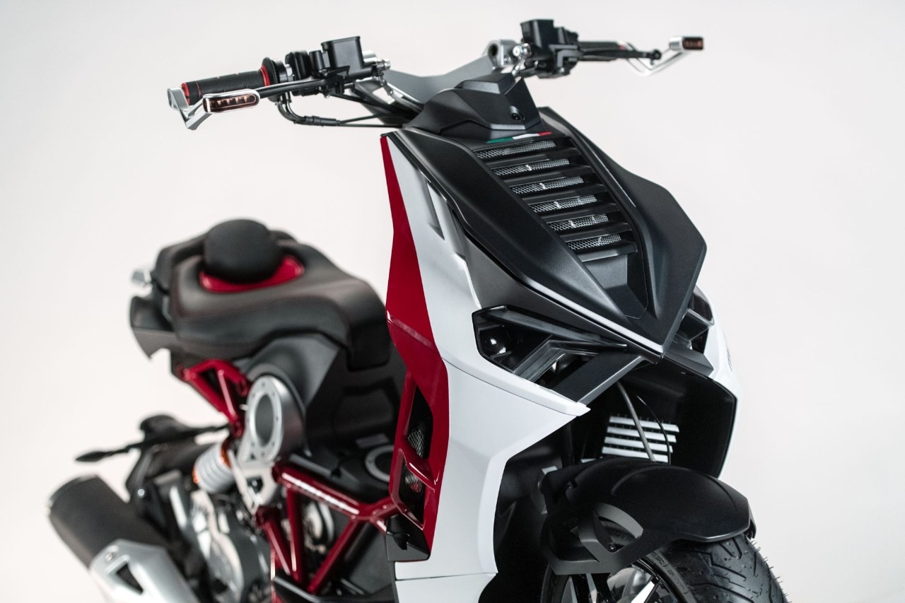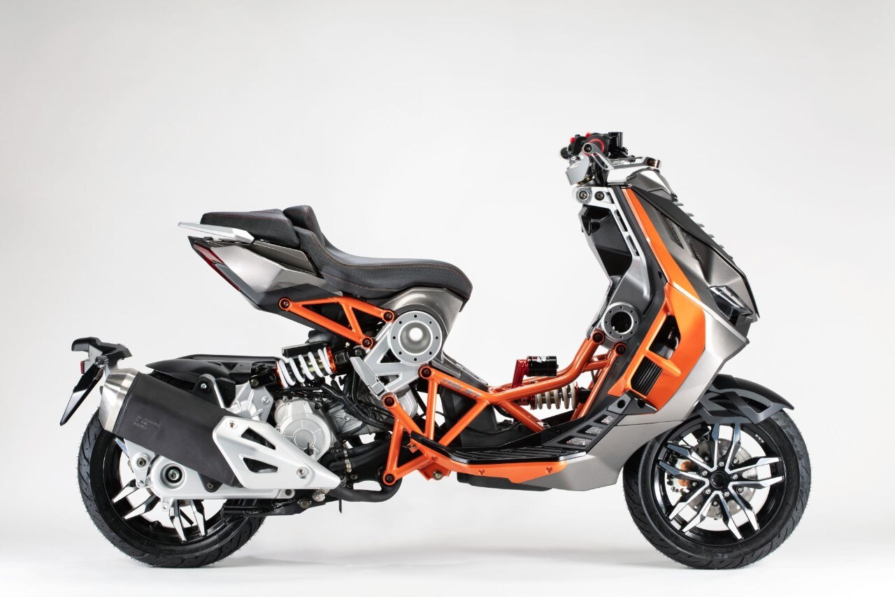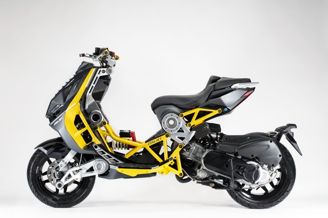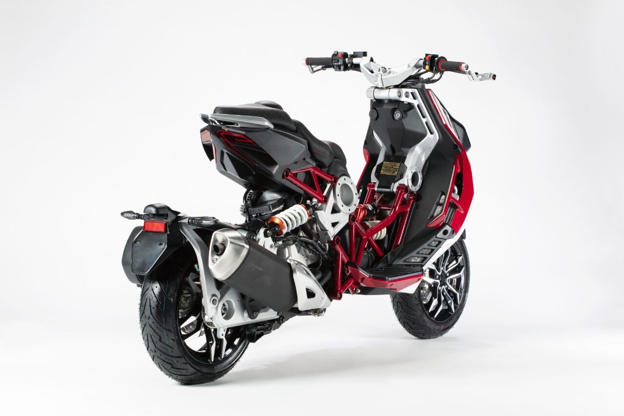 Dopo l’anteprima dello scorso anno, Italjet ha presentato a EICMA la versione definitiva dello scooter sportivo Dragster: telaio a traliccio in bella vista, sospensione anteriore monobraccio, motore monocilindrico a 4T raffreddato a liquido disponibile nelle cilindrate 125 e 200 cc (rispettivamente da 15 e 20 CV di potenza). I primi 499 esemplari della “First Edition”, caratterizzati dalla targhetta numerata, si possono prenotare online sul sito del costruttore.
