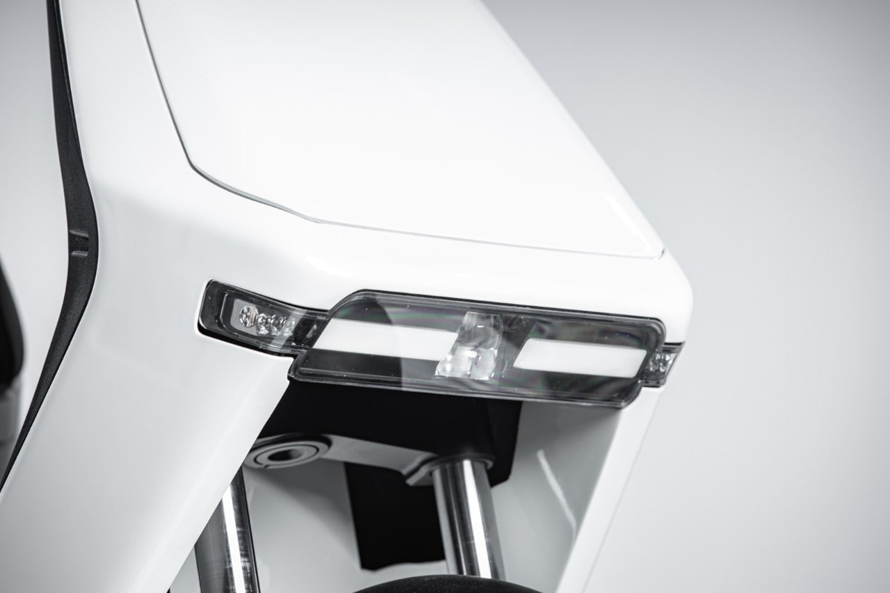 La retromarcia è attivabile da un interruttore sul comando del manubrio è utilizzabile a bassa velocità. Per quanto riguarda la frenata rigenerativa, nelle aree urbane è possibile risparmiare fino al 15% di energia. Inoltre è possibile utilizzare anche un freno totalmente elettronico. Si tratta di un efficiente sistema di recupero dell’energia cinetica che ricarica la batteria nelle fasi di decelerazione. Il freno può essere attivato premendo un pulsante sui comandi del manubrio.