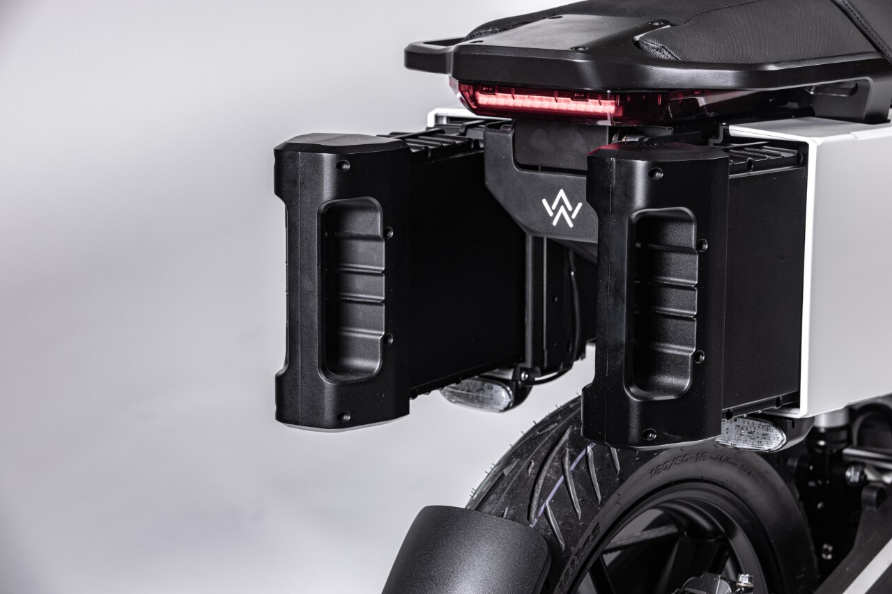 Le 2 batterie agli ioni in litio da 36V (72 V totali), oltre ad assicurare una buona autonomia sono posizionate esternamente ai lati della sella, nella parte posteriore dello scooter, si possono rimuovere solo dopo aver aperto e sollevato la seduta.