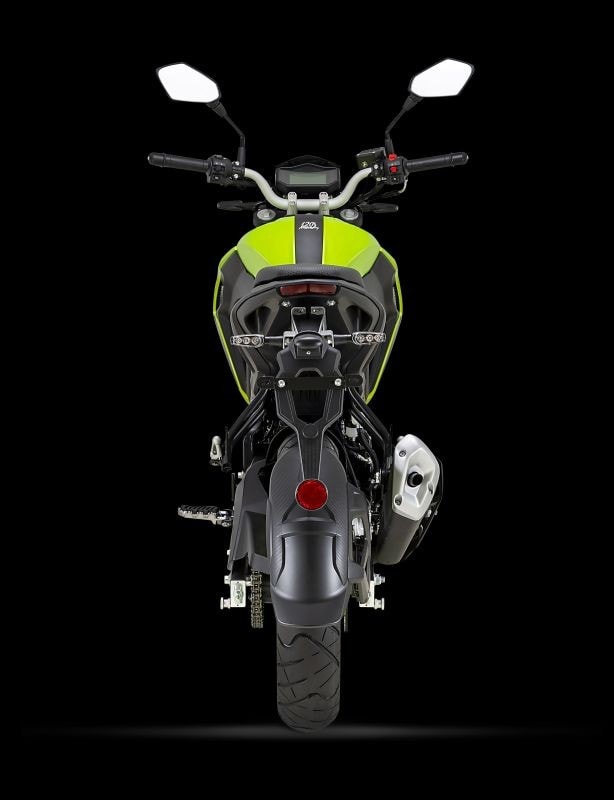 Il telaio è un tradizionale traliccio in tubi d’acciaio, che garantisce la massimamaneggevolezza. Le ruote da 17’’ montano pneumatici 100/80 all’anteriore e 130/70 al posteriore. I freni a disco sono rispettivamente 260 mm di diametro all’anteriore e 220 mm al posteriore (CBS).
