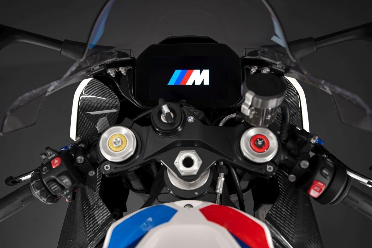 Il quadro strumenti della BMW M 1000 RR ha lo stesso design di base del RR e ha un'animazione di avvio M. Come parte degli accessori opzionali, un codice di attivazione (contenuto del pacchetto M competition) può essere utilizzato per fornire un pacchetto dati completo per l'uso del laptrigger M GPS e M GPS data logger tramite l'interfaccia OBD del cluster di strumenti.
