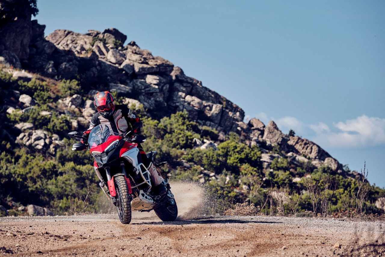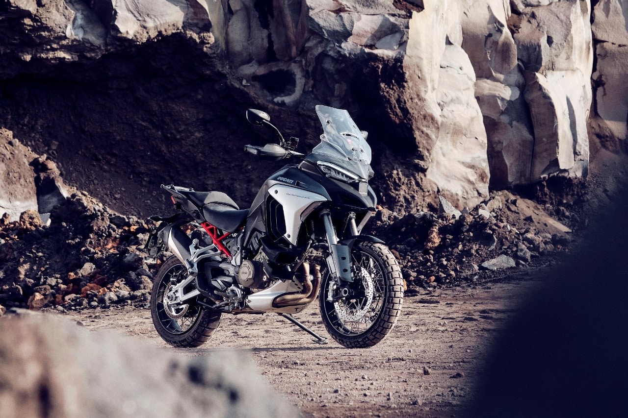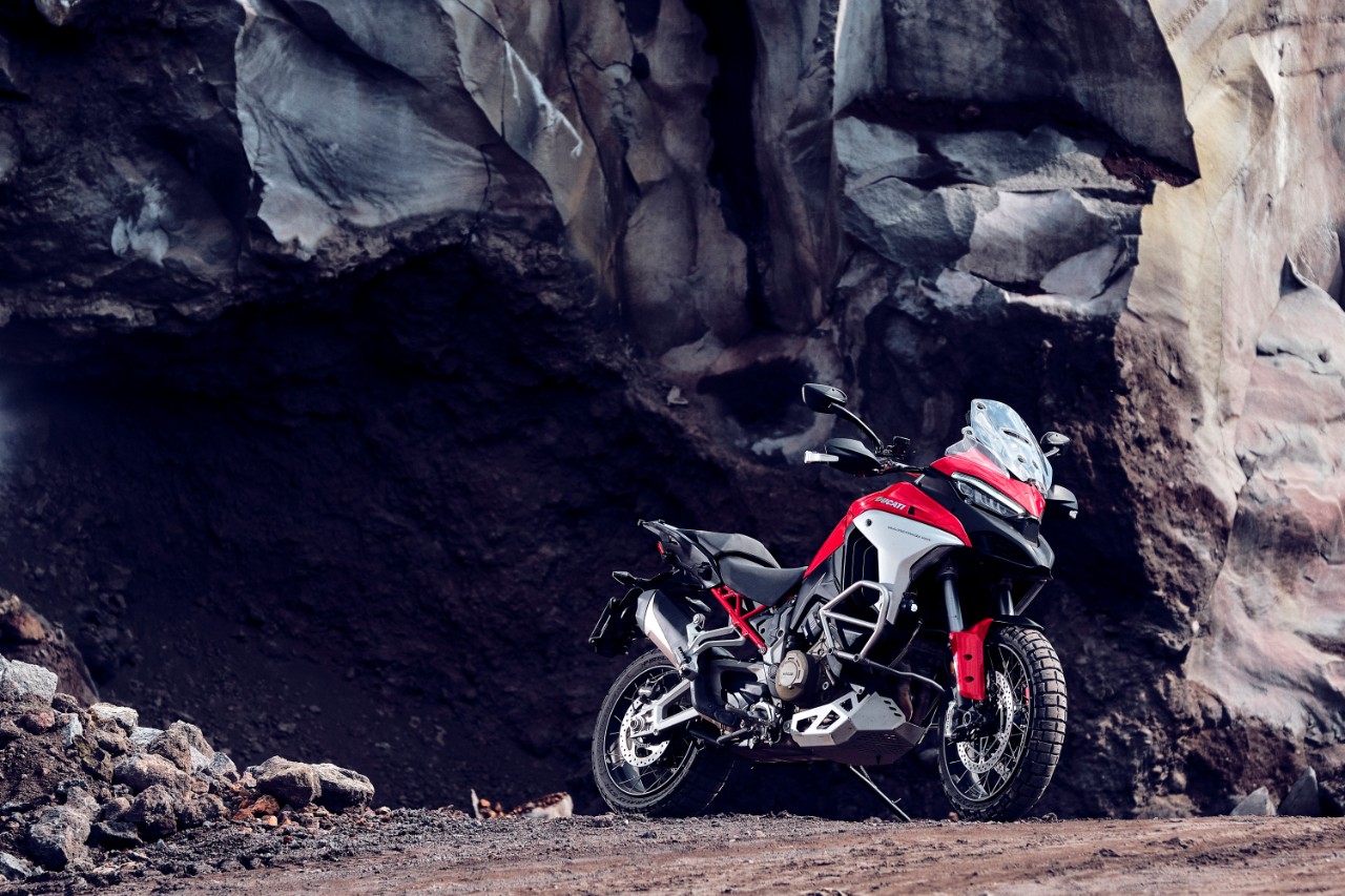La Multistrada arriva alla quarta serie e cambia tutto: motore V4, niente Desmo, telaio monoscocca, ruota da 19” e abbondanza di dotazioni con l’obiettivo di alzare l’asticella del segmento crossover