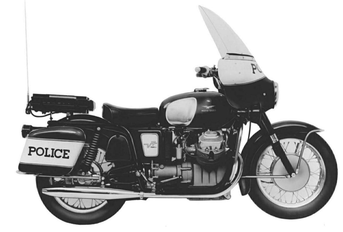 Tutto iniziò nel 1964, quando Moto Guzzi pensò di partecipare a un bando di fornitura per la Polizia stradale. Che cercava una moto di grossa cilindrata, agile nel traffico e facile da mantenere (nel capitolato di gara si prevedevano 100mila km sempre interventi meccanici rilevanti). nacque così la V7. Che piacque così tanto da essere adottata non solo in Italia, ma anche in alcune importanti città degli Stati Uniti come "moto della polizia".