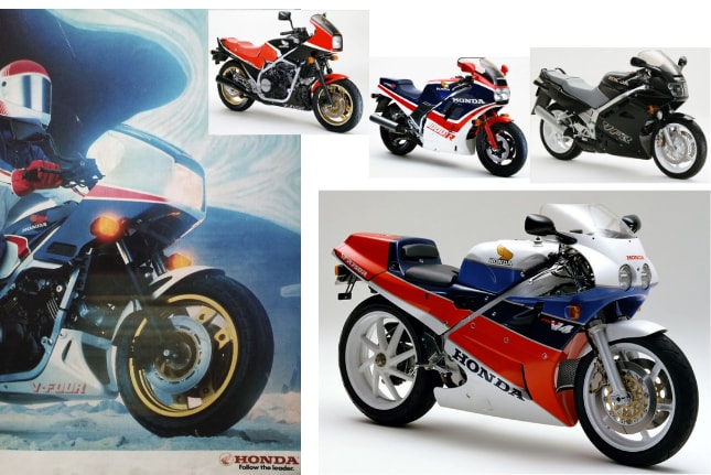 Quasi tutto venne e se ne andò nel giro di due tre stagioni. Ma quel che rimase gettò il seme per la successiva evoluzione del pianeta moto. Pensiamo a Honda. Fu lì che lanciò la sua offensiva chiamata VF. Una invasione dallo spazio che assumeva tutte le forme e tutte le cilindrate, dalle custom alle sportive. E allora ecco così in ordine sparso le VF 400 F (un orologino da 11.500 giri), VF 750 S, VF 1100 C, VF 500 F, VF 1000 R, VF 750 F e molte altre ancora. Tutte contraddistinte dal quattro cilindri a V, uno schema complicato e costoso, che divenne bandiera tecnologica e orgoglio nella corsa alle prestazioni che in quel periodo era perseguita con il quattro in linea da tutti gli altri jap (e da Honda stessa, con le CB).