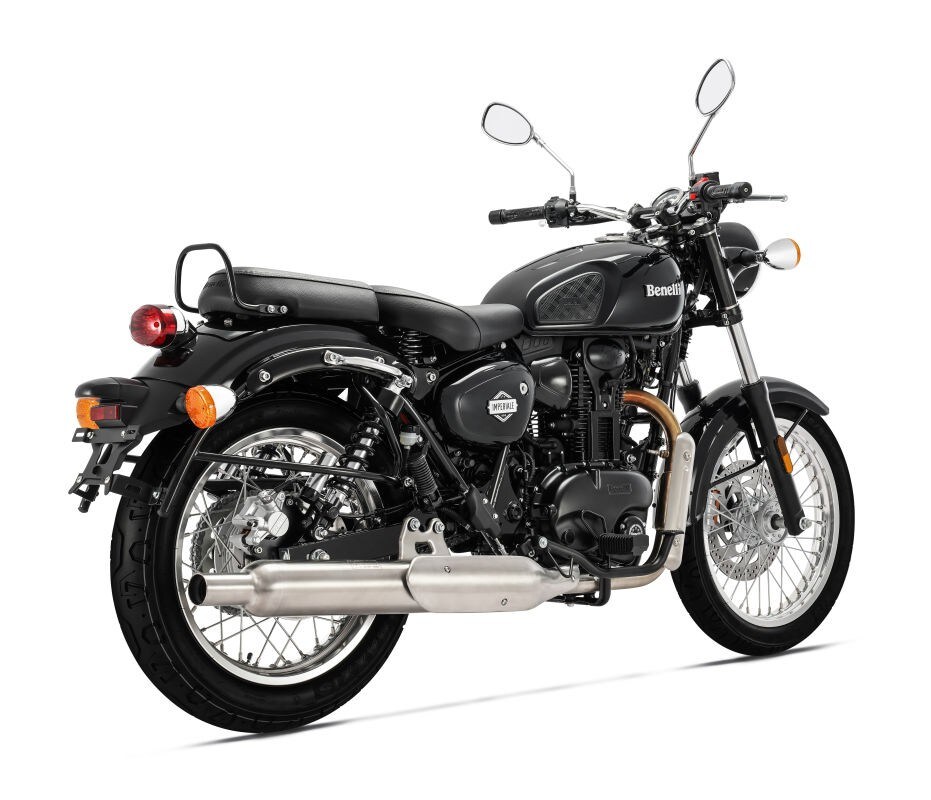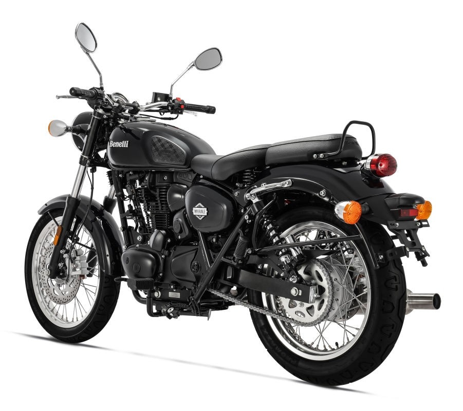 La Imperiale 400 possiede un telaio misto a doppia culla in tubi e piastre d’acciaio, compatto e resistente. Le sospensioni prevedono all’anteriore una forcella telescopica con steli da 41 mm di diametro ed escursione da 121 mm, mentre al posteriore un forcellone oscillante con doppio ammortizzatore, con escursione da 55 mm. Il disegno dello scarico e gli inserti cromati, accentuano lo stile vintage di questa nuova due ruote Benelli, così come il faro anteriore, rotondo, tipicamente retrò e il serbatoio a goccia, in grado di esaltare la vera essenza della moto. Il sistema frenante di Imperiale 400, efficace ed equilibrato, è composto all’anteriore da un disco di 300 mm di diametro con pinza flottante a 2 pistoncini e da un disco di 240mm con pinza flottante a singolo pistoncino al posteriore. L’Abs è di serie.