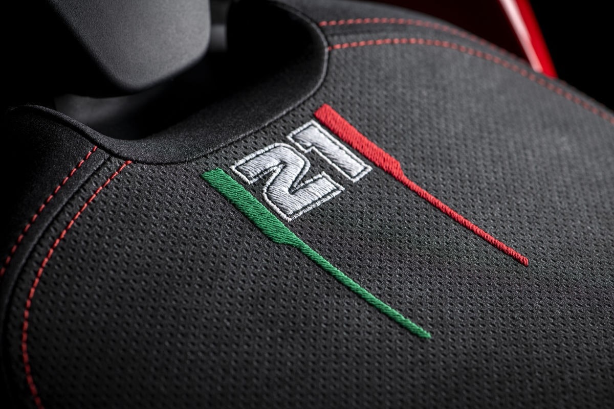 L’equipaggiamento è completato dalle manopole sportive, dalla cover del finale del silenziatore in fibra di carbonio e titanio e dalla sella pilota realizzata abbinando due diversi materiali tecnici con doppia cucitura rossa. Sulla sella è ricamato il numero 21 di Troy in bianco affiancato da due bande verticali di colore verde e rosso a comporre la bandiera italiana. La moto monta inoltre le pompe freno e frizione autospurganti con serbatoi olio in colorazione fumè.
