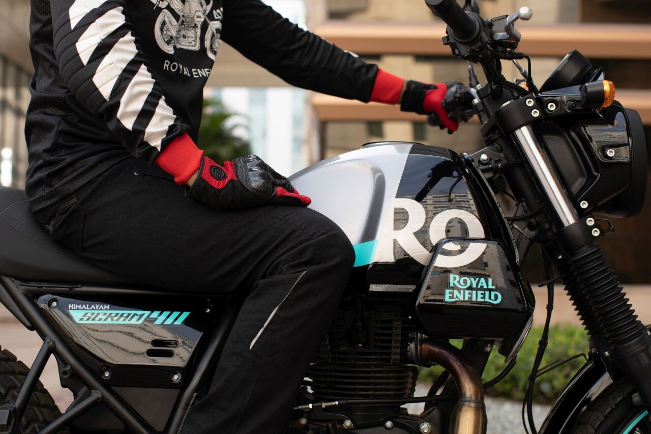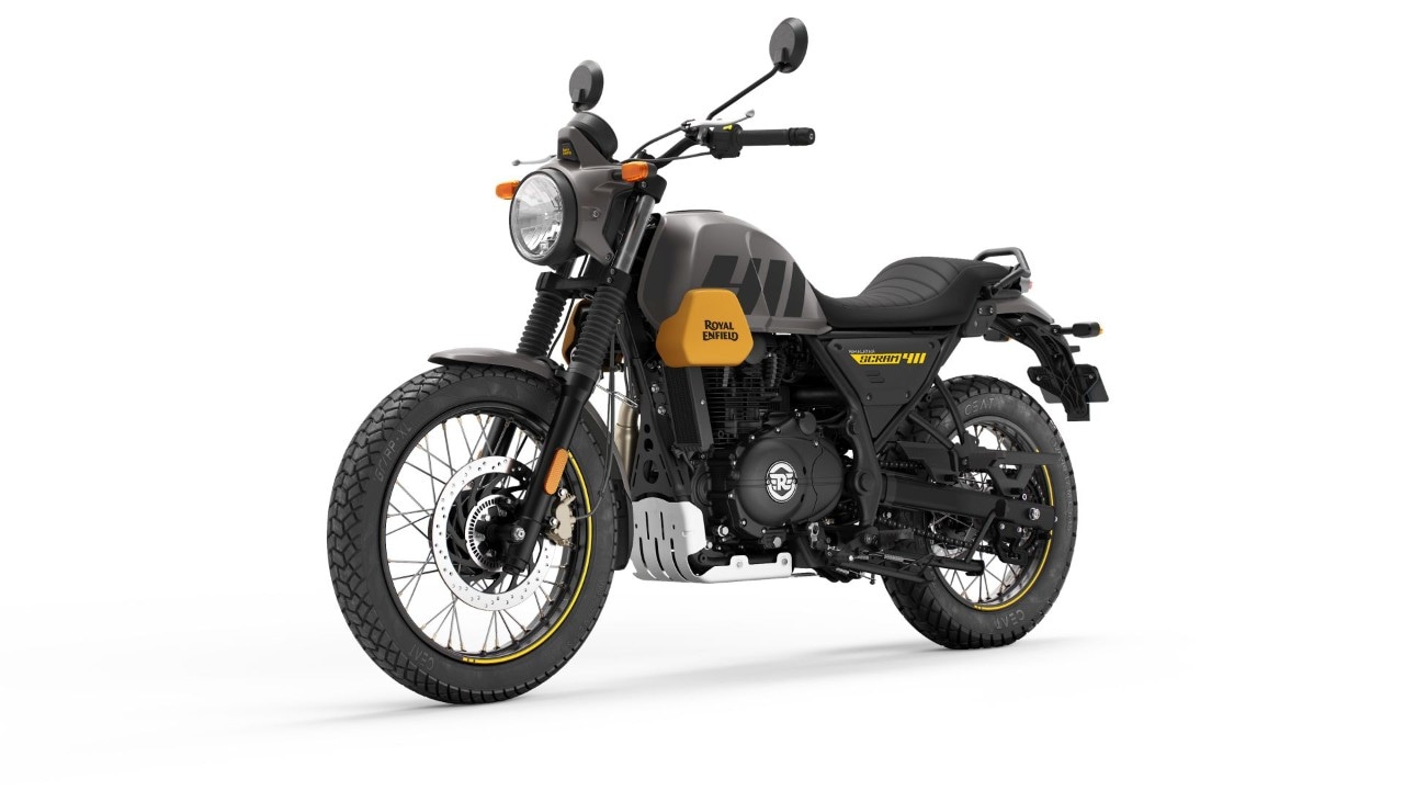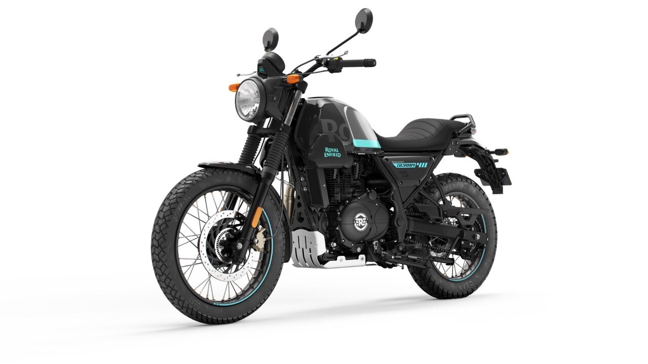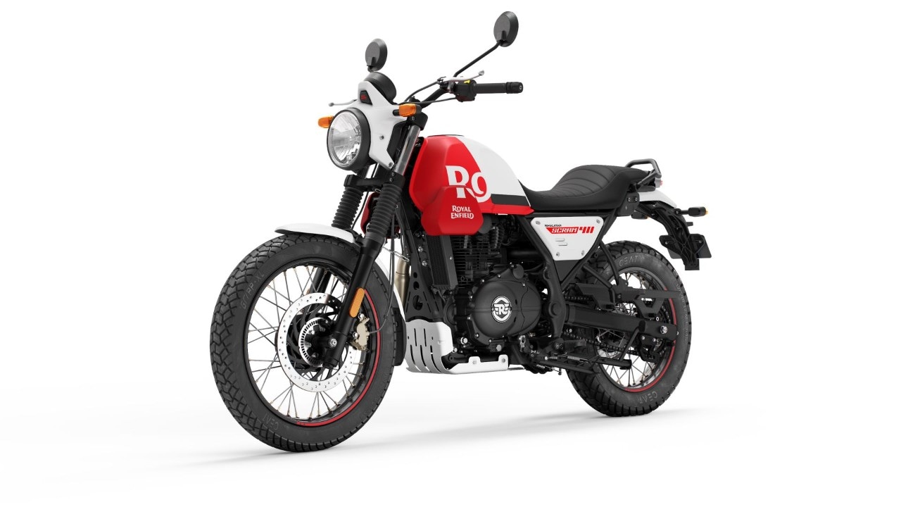 Ispirata alle flat track, la Scram 411 vuole dichiaratamente aprire il nuovo filone delle "Adventure-crossover", ovvero moto di destinazione prevalentemente urbana derivate da Adventure con il 21" anteriore. Lo fa puntando sulla ricetta della facilità di utilizzo che sta facendo la fortuna delle ultime Royal Enfield: grande protagonista il monocilindrico corsa lunga raffreddato ad aria e olio e dalle prestazioni "adeguate" con i suoi 24,3 CV a 6.500 giri per 32 Nm di coppia ad appena 4.250 giri. Valori ideali per spostarsi in città con sufficiente brio e zero stress, potendo contare su consumi reali attorno ai 30 km/l e un'autonomia maxi grazie al serbatoio da 15 litri.
