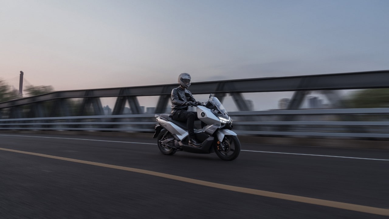 La praticità è massima, dovuta ai 4 metodi di sblocco dello scooter, telecamera frontale e posteriore, retromarcia, cruise control, un vano sottosella da 8 litri in grado di ospitare un casco integrale e un ampio display TFT da 7”.