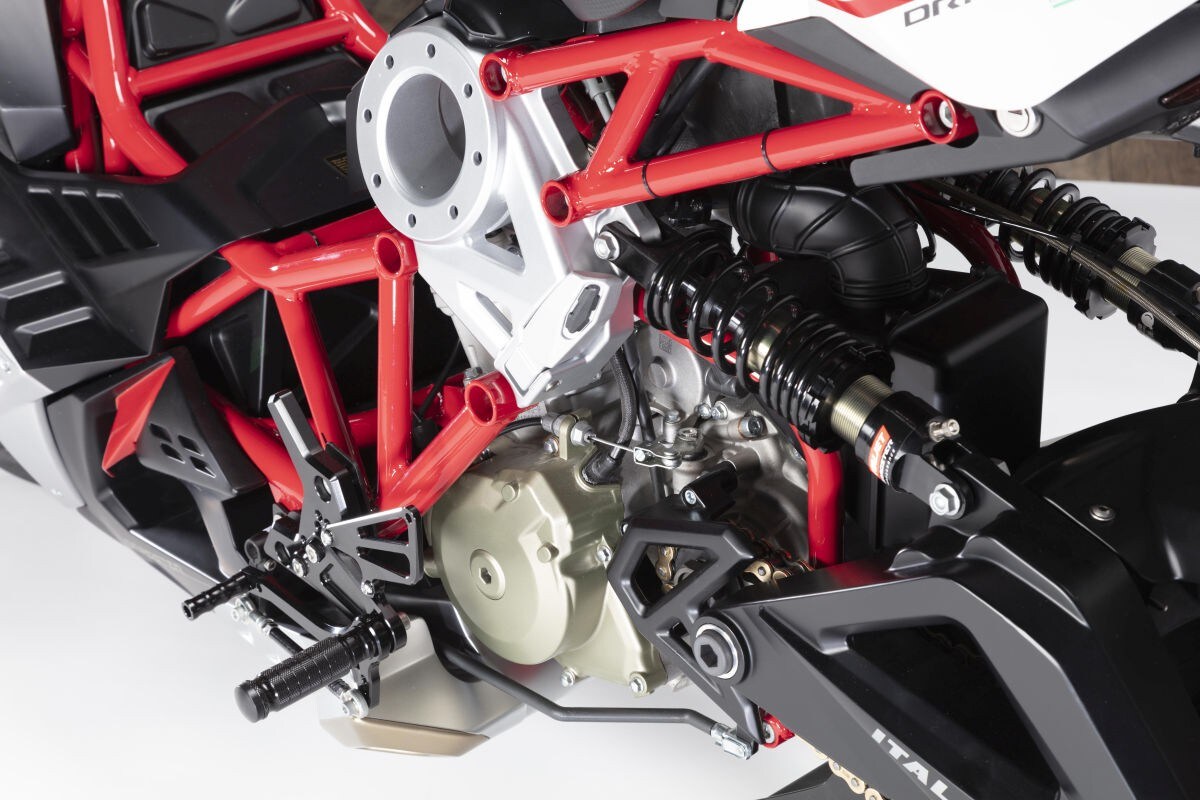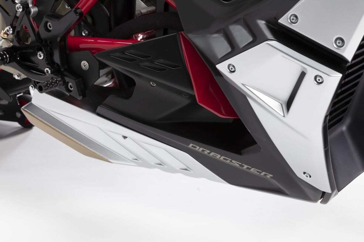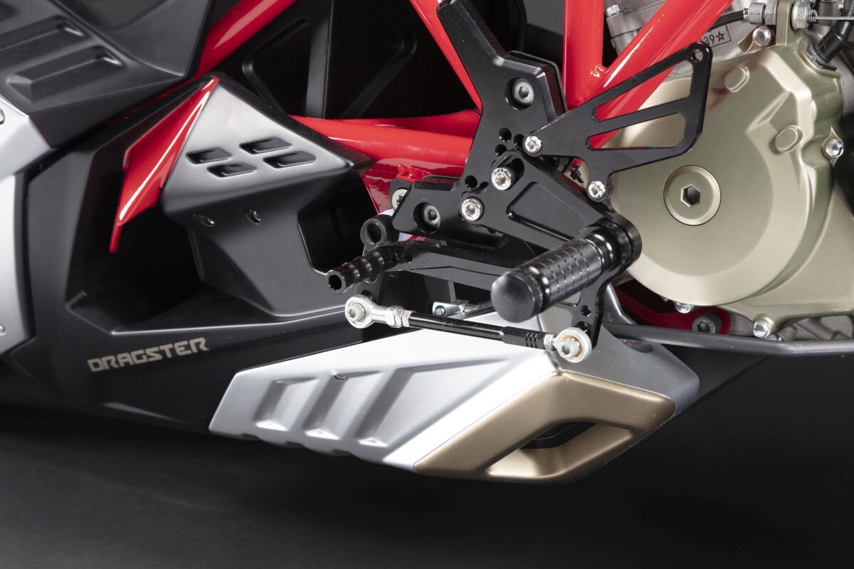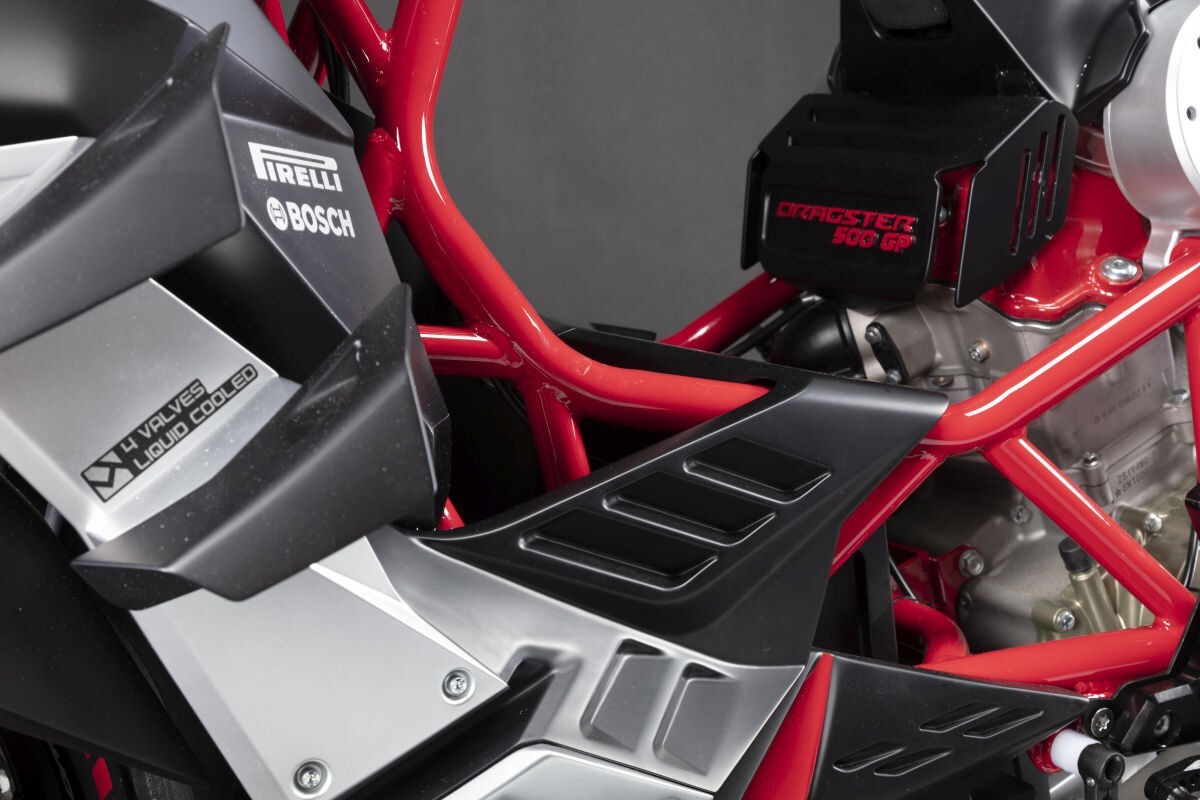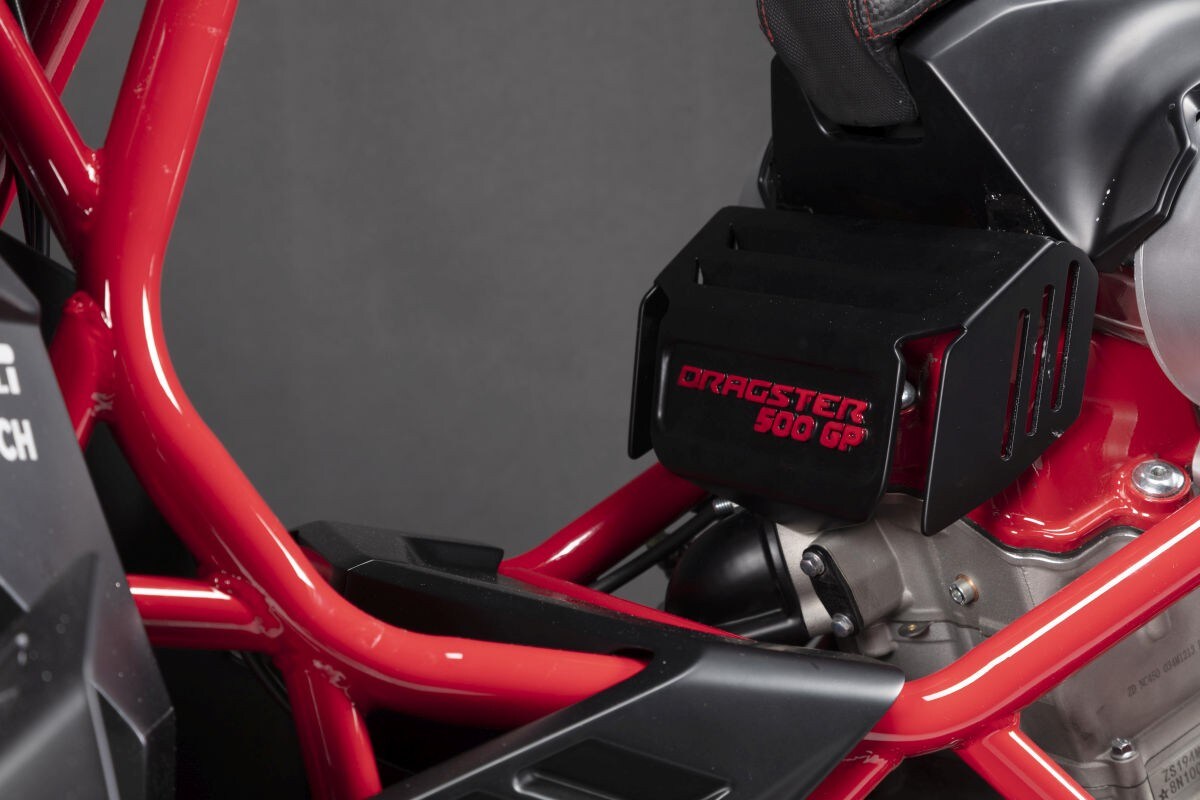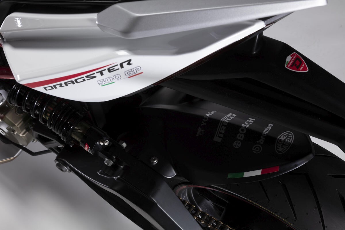 "Innanzitutto il Dragster 500 sarà interamente prodotto e assemblato nei nostro stabilimenti. Come dichiarato, il sistema frenante sarà Brembo e le gomme Pirelli, mentre il motore sarà un monocilindrico Minarelli. E a questo tengo particolarmente: mio padre e Giorgio Minarelli sono nati nello stesso periodo, hanno iniziato a fare impresa a pochi chilometri di distanza l'uno dall'altro. Tra di loro esisteva un rapporto di amicizia nato nel 1960. Per me è un onore proseguire questo rapporto. Tornando ai componenti, credo che anche la forcella sarà fornita da un'altra azienda italiana, ma dobbiamo ancora definire".