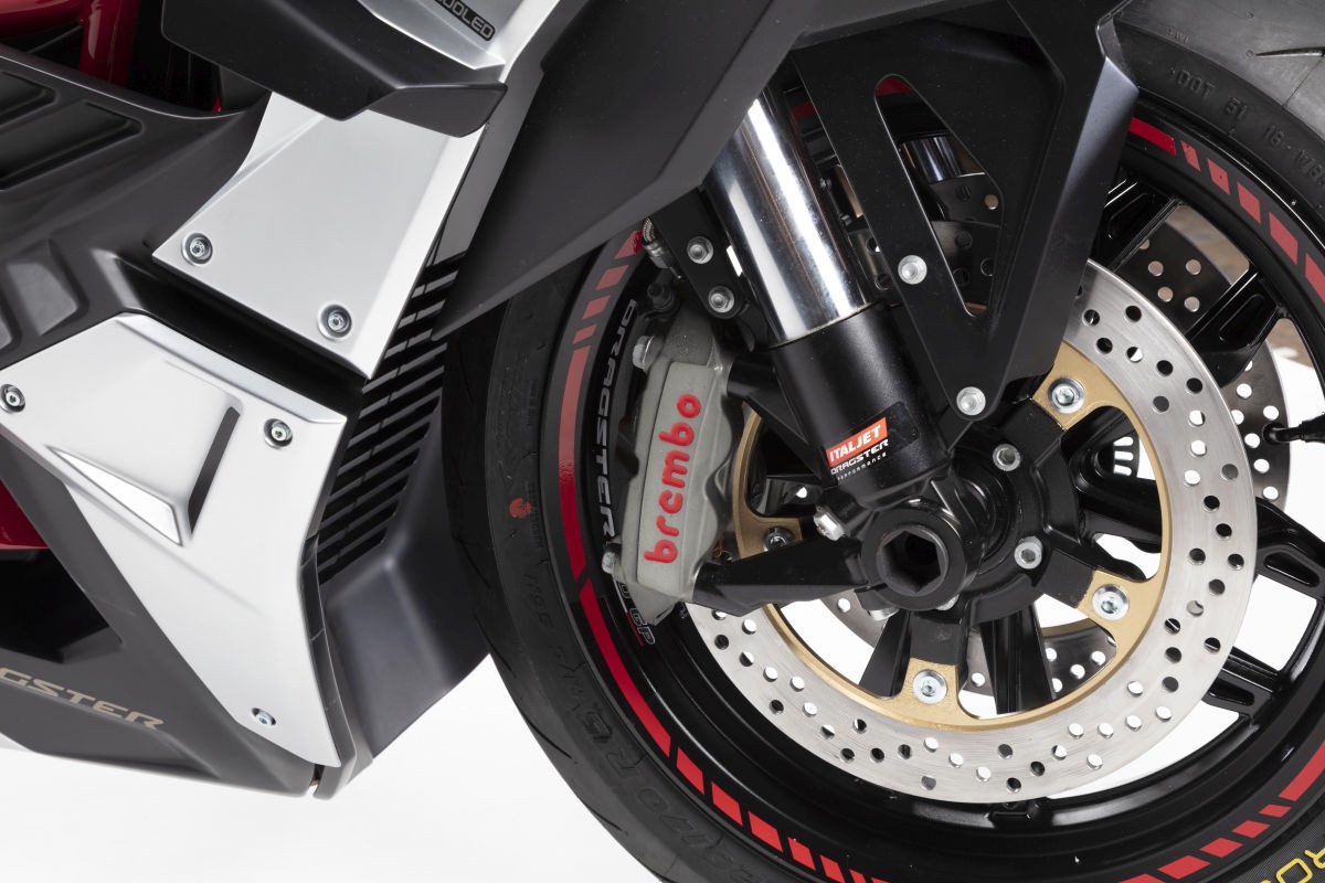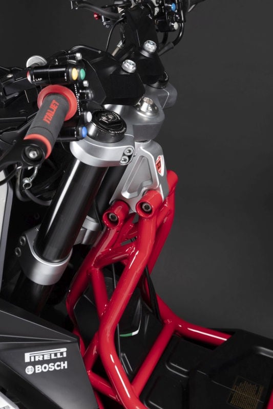 "L'obiettivo è arrivare nel primo semestre del 2024. Adesso dobbiamo fare i necessari aggiustamenti per trasformare il prototipo in un prodotto di serie. La marmitta, ad esempio, sarà spostata leggermente più indietro. E poi faremo modifiche alla piastra di sterzo, mentre il TFT definitivo sarà più grande di quello visto finora. Ma nel complesso la struttura c'è. Sarà un maxiscooter premium come nessun altro, con interasse di 1.480 mm, con cambio a sei marce e frizione".