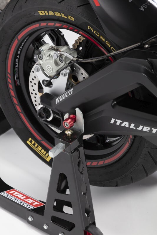 "Il sistema Sis che abbiamo usato sui Dragster 125 e 200 era concepito per uno scooter con ruote da 11 e 12 pollici e per velocità decisamente più basse. Qui parliamo di una moto con ruote più grandi e che raggiunge i 180 all'ora: la forcella era la soluzione migliore".