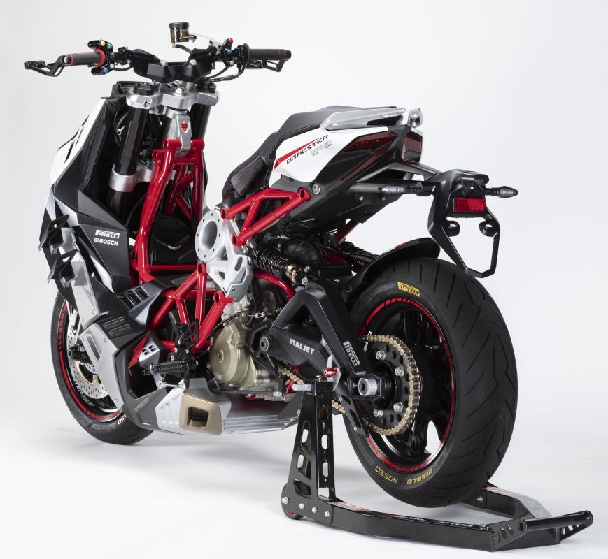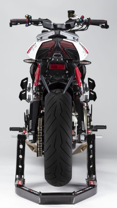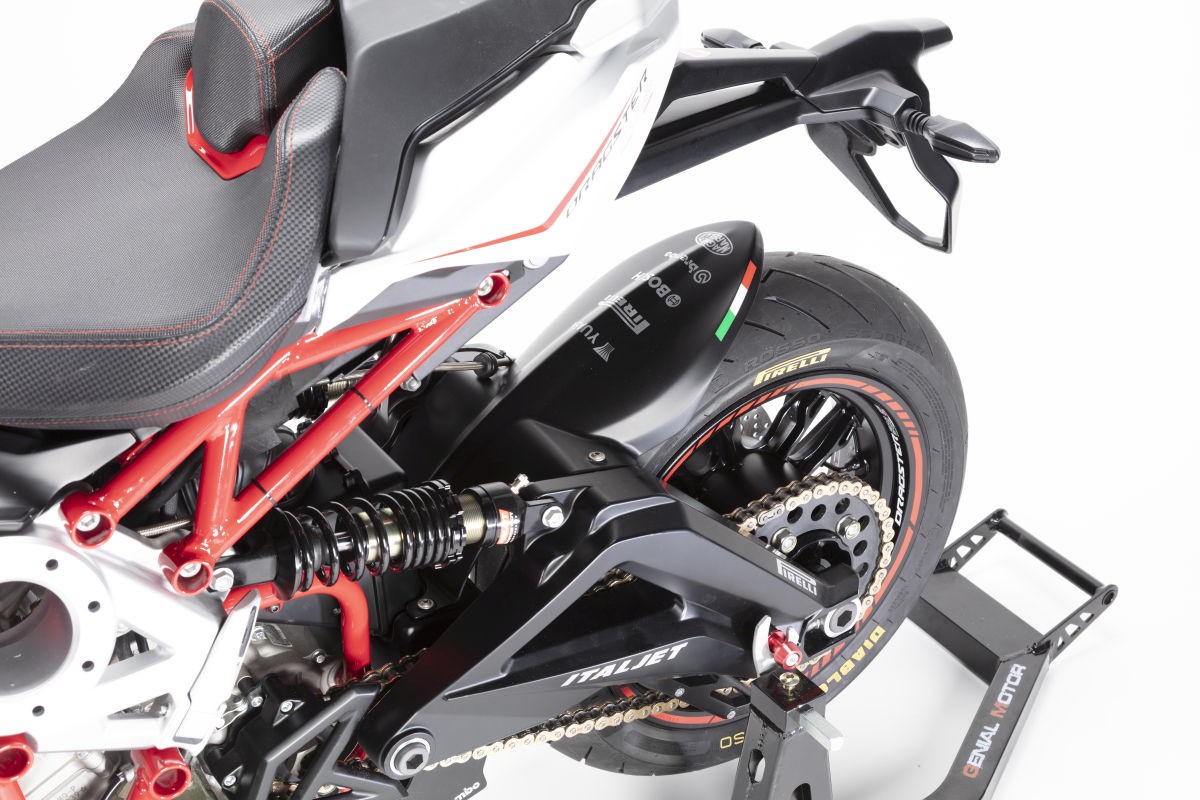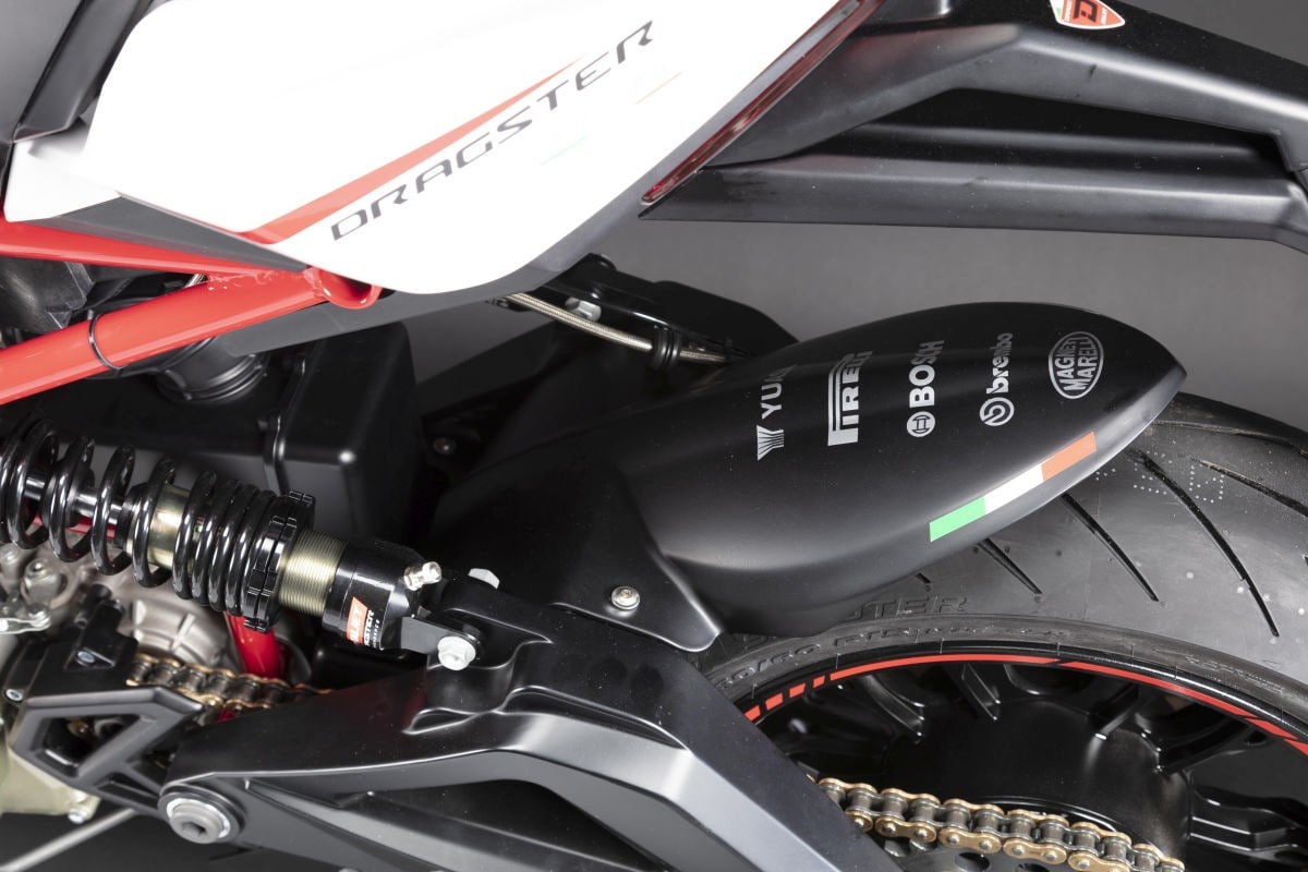 "Esatto. Nasce sulla base tecnica del Dragster 125-200 e sarà nei concessionari tra aprile e maggio. La batteria, che si potrà ricaricare attraverso la rete domestica, non è removibile ed è stata alloggiata al di sotto dell'ammortizzatore. Anche in questo caso, si differenzierà da tutta la concorrenza per prestazioni: a seconda della mappatura e dello stile di guida, avrà un'autonomia variabile tra 90 e 120 km, mentre la velocità massima sarà superiore ai 130 all'ora".