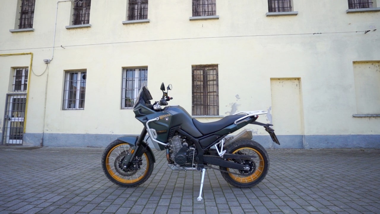 Certo, per arrivare a un prezzo del genere bisogna accettare non solo qualche saldatura migliorabile, ma anche che molta componentistica sia cinese non solo nella fabbricazione, ma al 100% come nel caso dei freni: ma i Taisko a fissaggio radiale anteriori funzionano decisamente bene. I nomi occidentali sulla 810X sono pochi, ma presidiano parti fondamentali: KYB (la forcella, da 48 mm e il mono, entrambi completamente regolabili), Akront (i cerchi, tubeless a raggi tangenziali), Pirelli (gli pneumatici, Scorpion Rally STR da 90/90-21” e 150/70-18”) e Bosch (l’ABS).