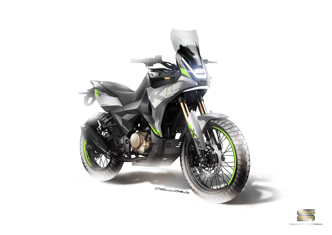 Alla fiera milanese il marchio KL, distribuito da Pelpi International, lo stesso importatore di Kove, si presenta con una bella novità in tema crossover. Si tratta di una concept di piccola cilindrata, la Duel X da 125 cc, frutto della matita del giovane designer italiano Samuele Dell’Oro. Nasce sulla base della sorella naked Duel, ma se ne discosta per l’impostazione di guida rialzata, la maggiore luce a terra, escursione delle sospensioni e per le dimensioni della ruote, con anteriore da 19”.